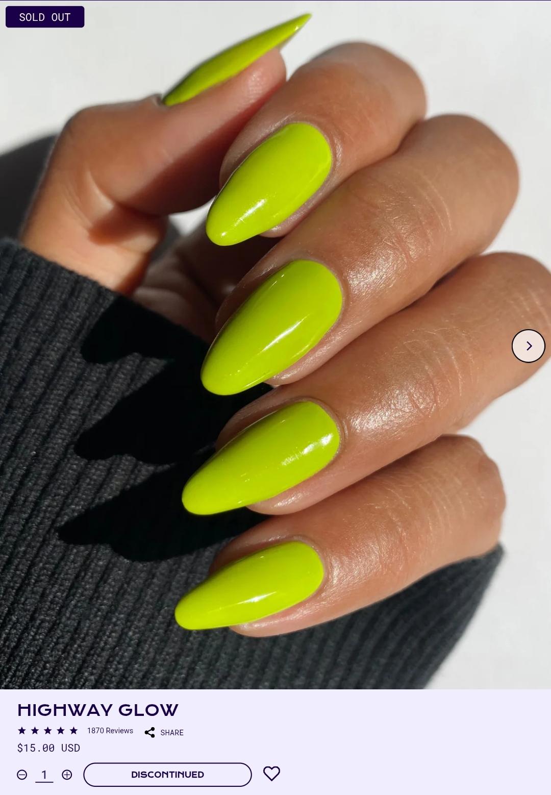 [Dart Time Lover by Jen & Berrie](https://jandberries.com/products/dart-time-lover-nail-polish)s feels similar to highway glow but has a shimmer to it. I have others of her neons and they’re all really pretty.