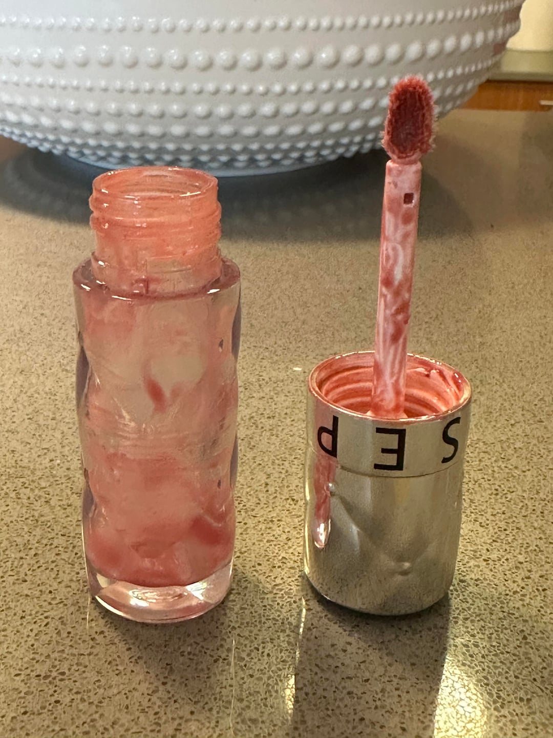 (featuring my son in the last photo 😝🥰) Took about 4 months to pan. Its 6ml, so surprised it was done so quickly. I was working on other lippies at the same time as well. Great formula and color pay off. Awful taste. So glad its over