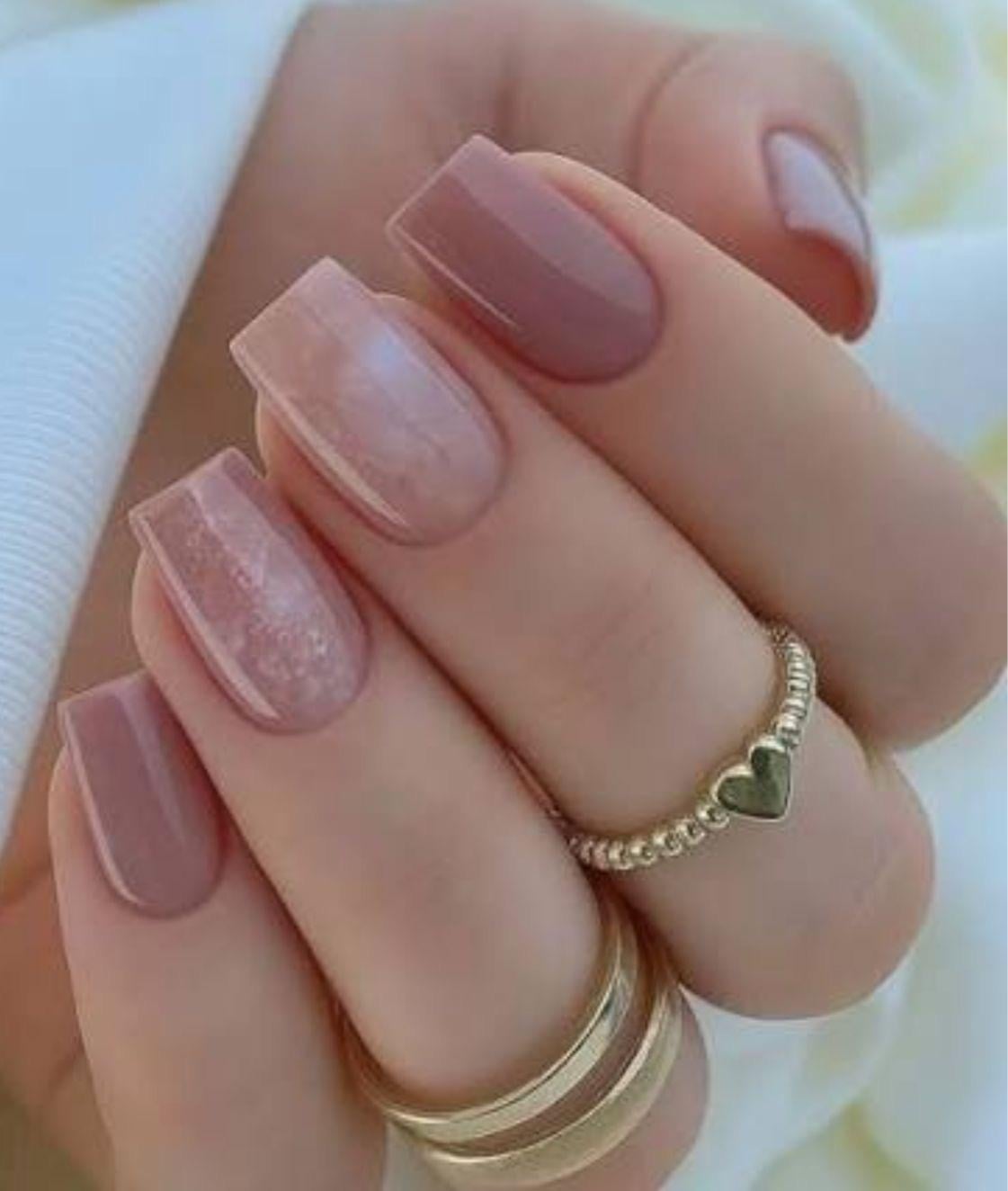 Soft nude pink nails with a glitter accent ✨
