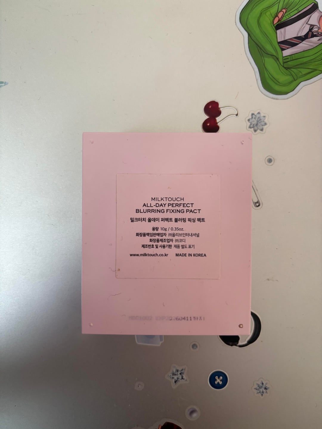Korean makeup comes with an expiration date, and although mine is pretty faded this one says April 11, 2026. (I rarely follow the expiration date on powder products, but I'm super close to finishing this one just a few weeks after the date!) This is the MilkTouch All-Day Perfect Blurring Fixing Pact