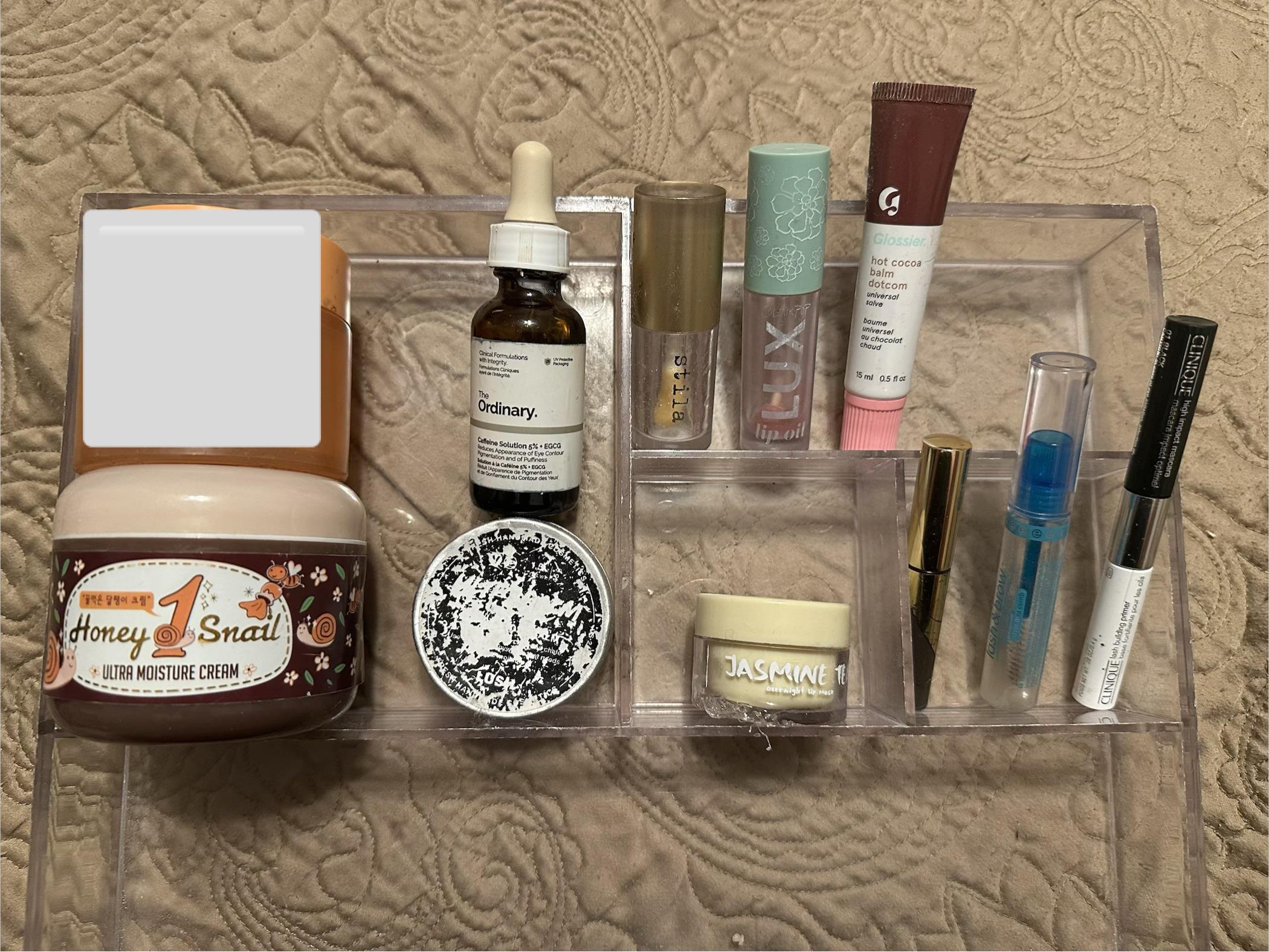 Would 100% buy Ultrabalm, Honey Snail again but am trying to use up my stash of moisturizing and hydrating things. I’ve replaced Ordinary caffeine serum with an another random caffeine serum.