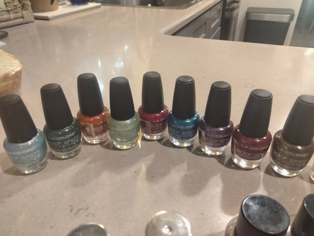 LA Colors Color Craze – Ocean Mist, Voodoo, Firey Orange, Green Tea, (Unlabeled Red), Pacific Blue, Grape Vine, Merlot, NP462 (Cactus?)