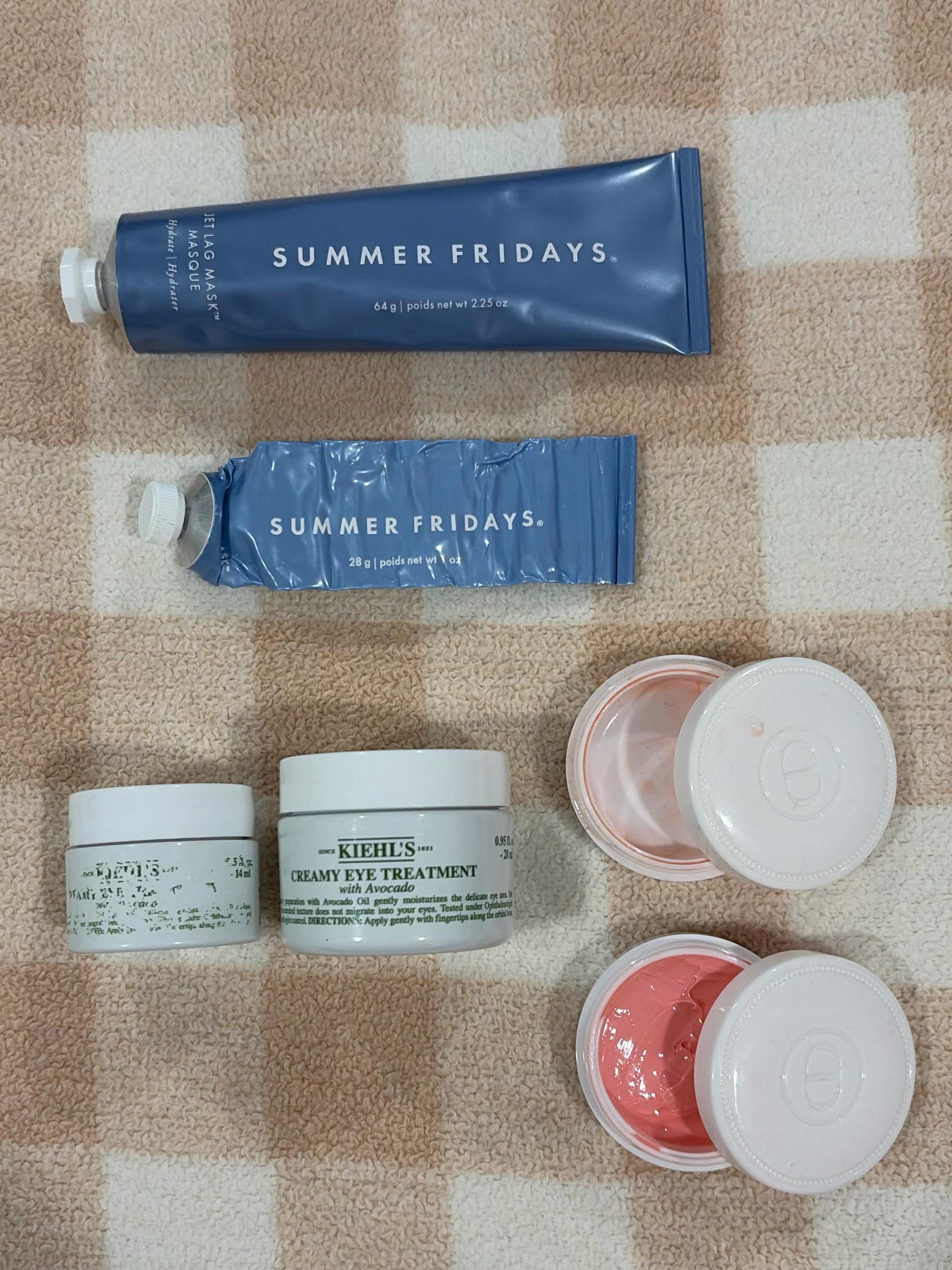 Summer Fridays Jet Lag Mask Kiehl’s Creamy Eye Treatment with Avocado Dior Crème Abricot (same size but a bonus holy grail pan) by idonthaveaplane