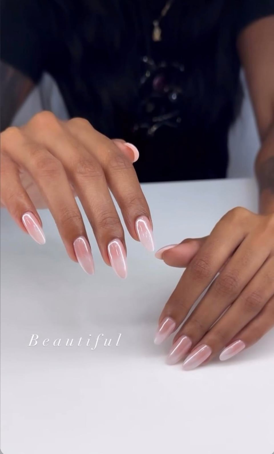 Taken from her insta. Pink/white ombré with chrome on top