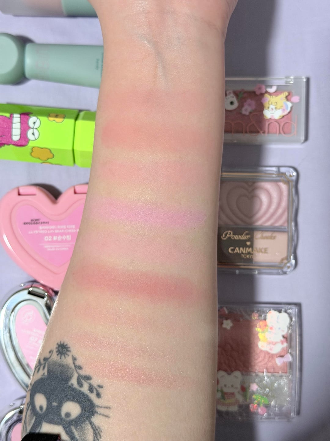 canmake powder cheek – P05 (so shimmery and pretty! wish the romand was as pigmented as this)