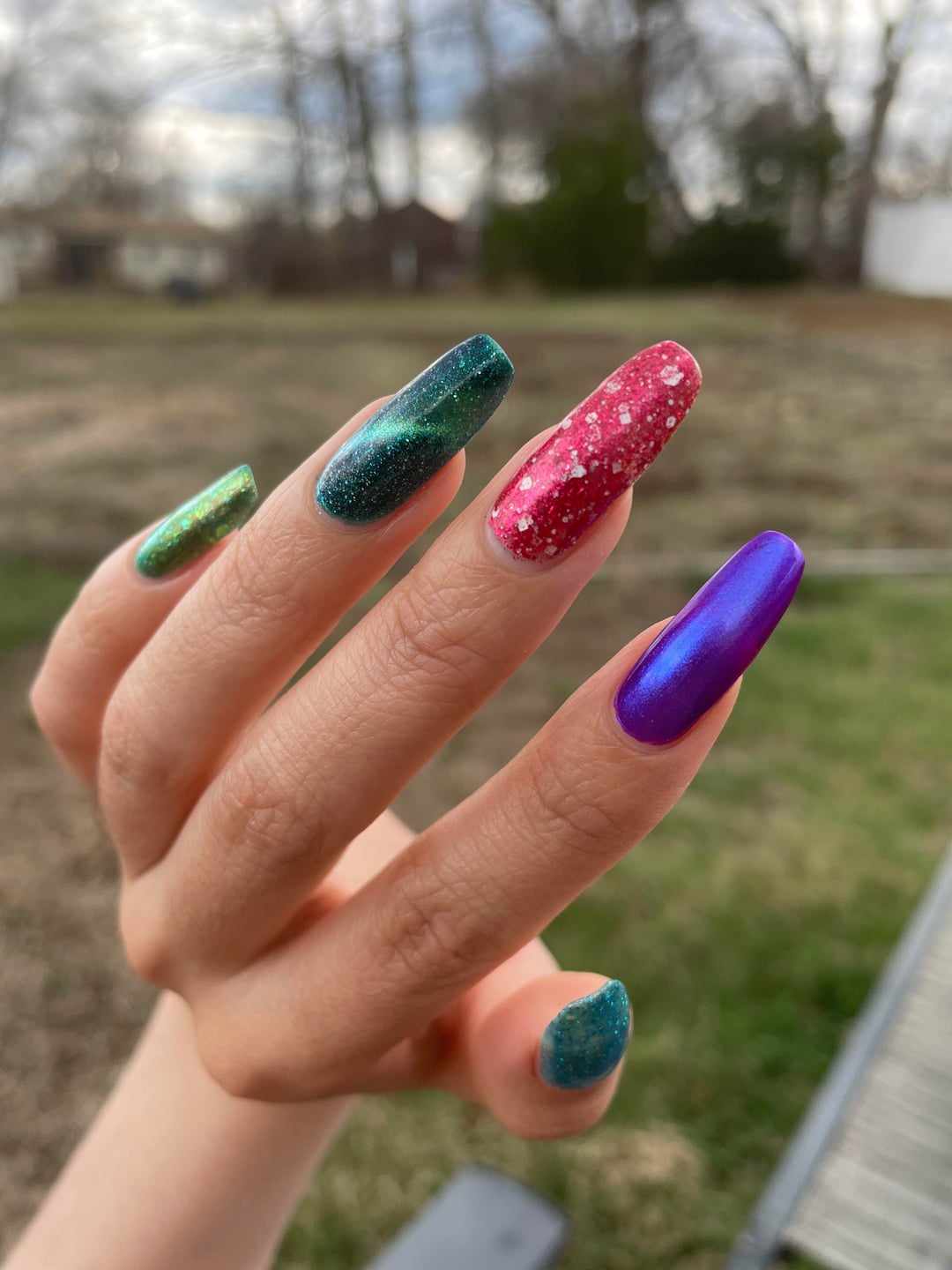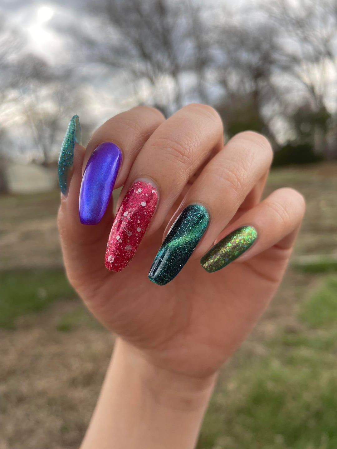 Had a lot of fun with this mani! Polishes used in order from thumb to pinky: – Sylvanclaw – Pond-ering – Polished for Days – Goblins & Ghoulies – Night Owl Lacquer – Cap of a Toadstool – ILNP – Enchantment – Alchemy Lacquers – Toadstool by eurykas