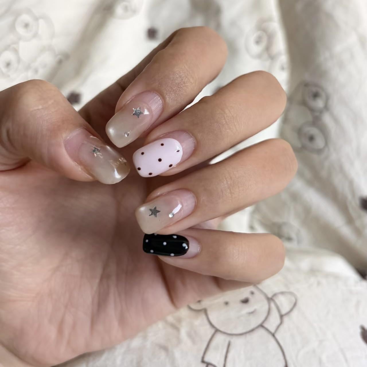 she just sent me this pic — it’s been 40 days and there’s basically no lifting or chipping. i was not expecting this at all, usually when i do nails on someone else the wear time is shorter because i can’t control how they treat them lol