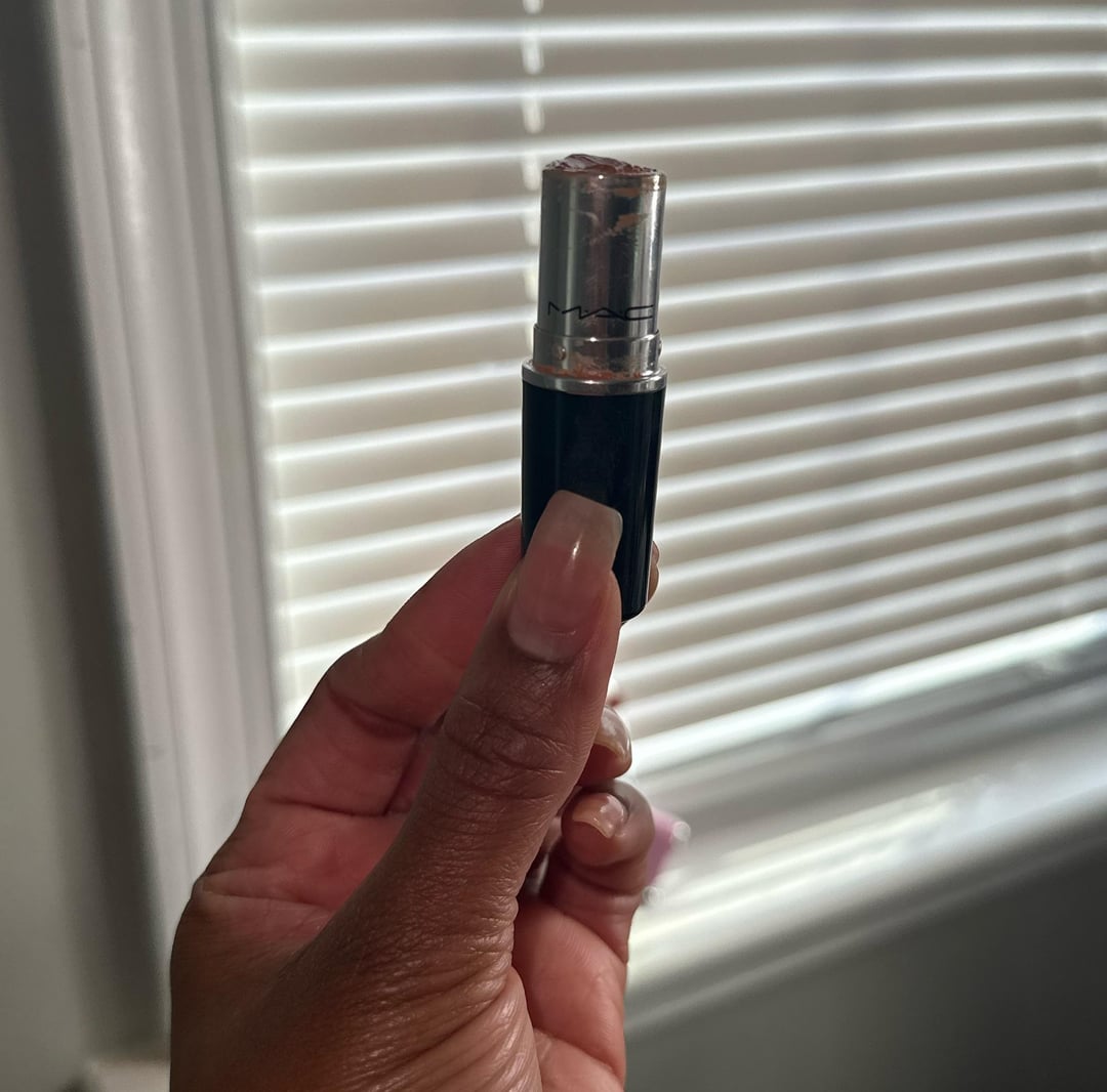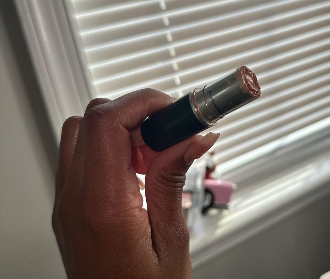 Mac discontinued lipstick in Mars to your Venus. It’s an old lustreglass formula. I’ve been using a lip brush with it but I think it’s time to call it. It’s all the way rolled up. Another lipstick down 👏🏾 by Juelzmain22_