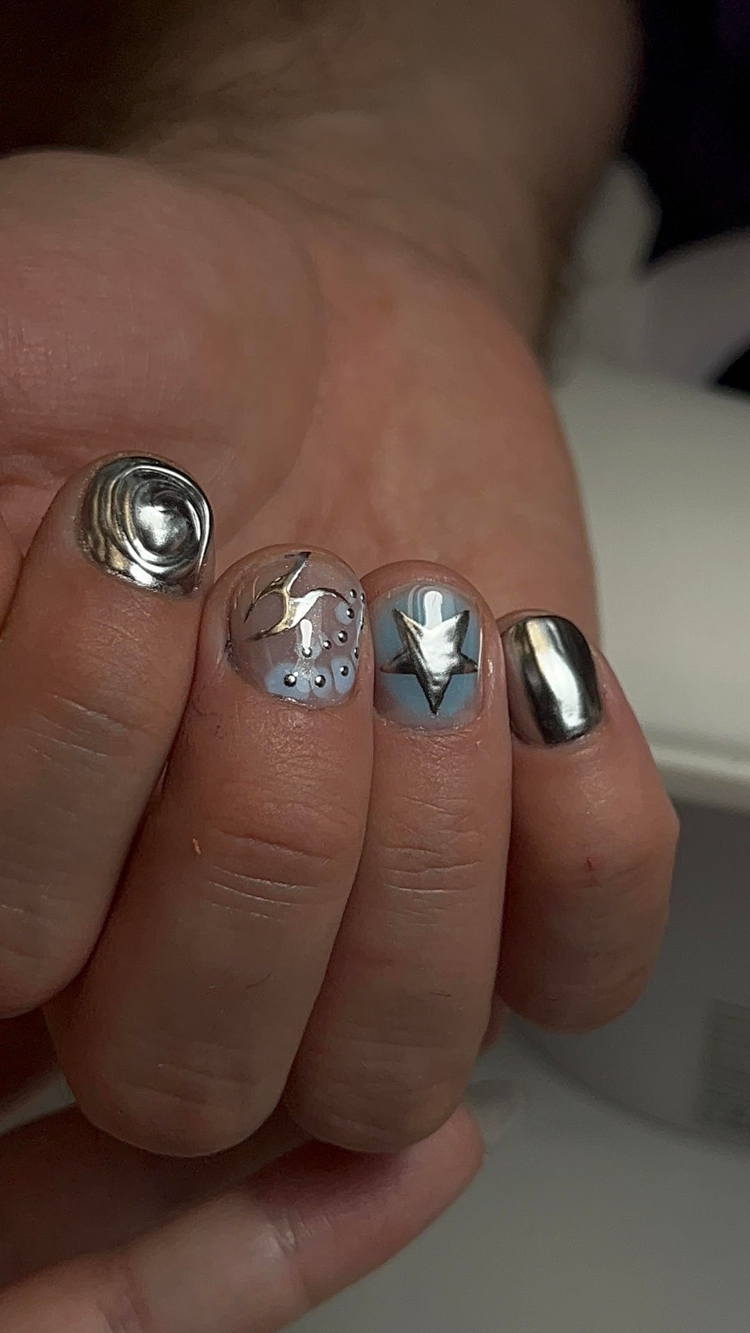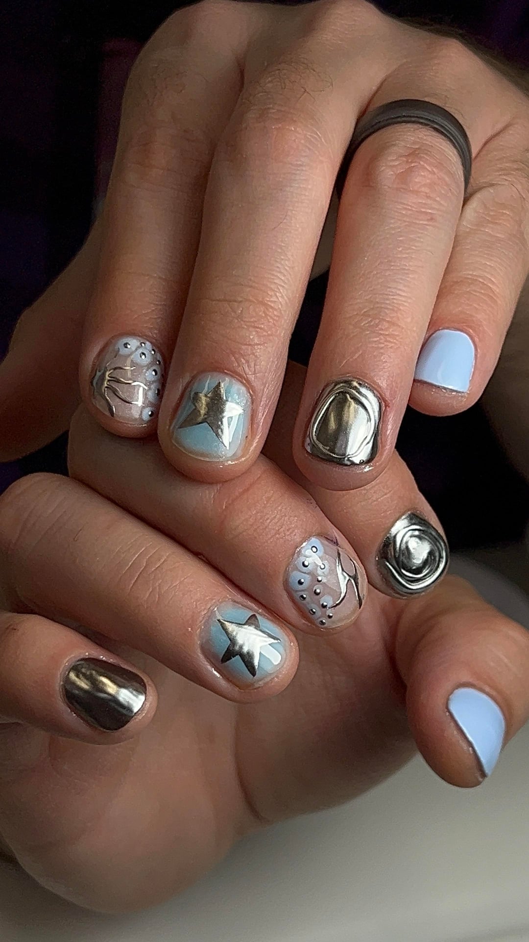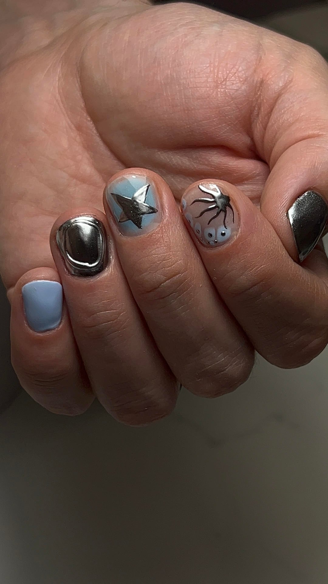 Got around to my boyfriend’s second wave of nail art. He chose the colors & told me to get creative. He’s loving chrome lately so we might run with that for a while.