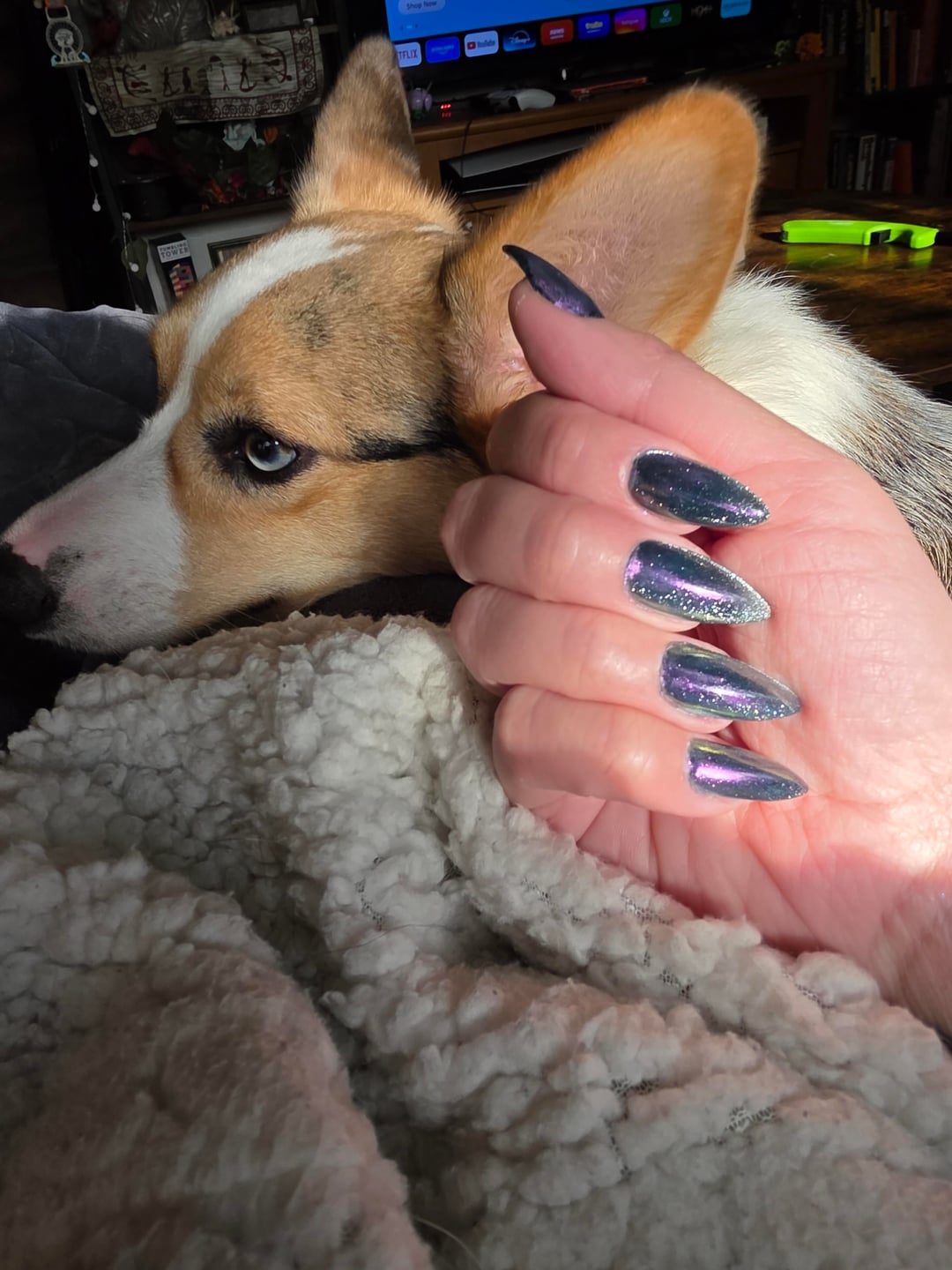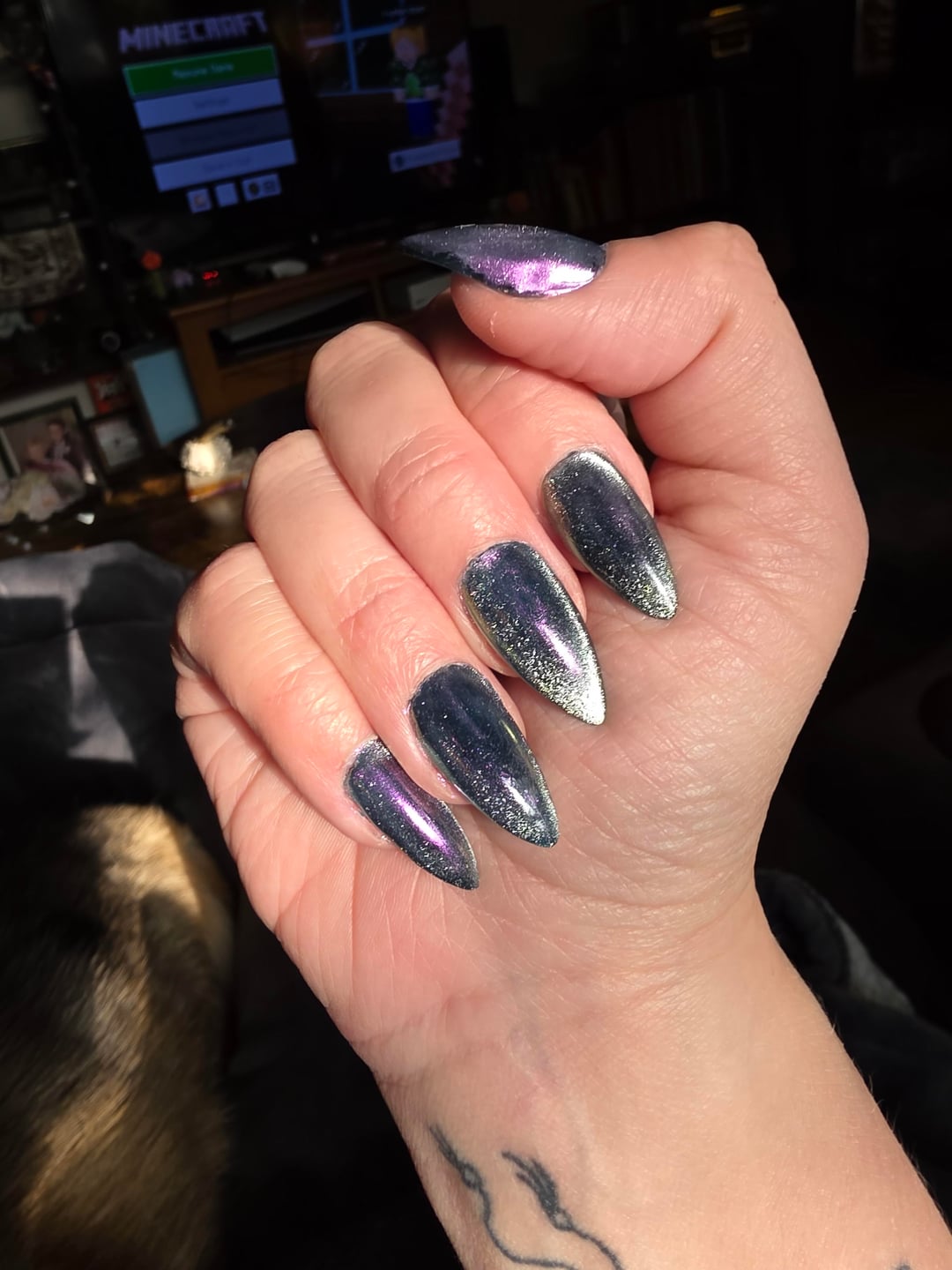I've been seeing this design everywhere, and tried to recreate it with what I had in my stash. I feel like the Chrome could have had more pizzazz but I really like it in the light!!! Anyone have a good Chrome powder with lots of shift and light coverage?