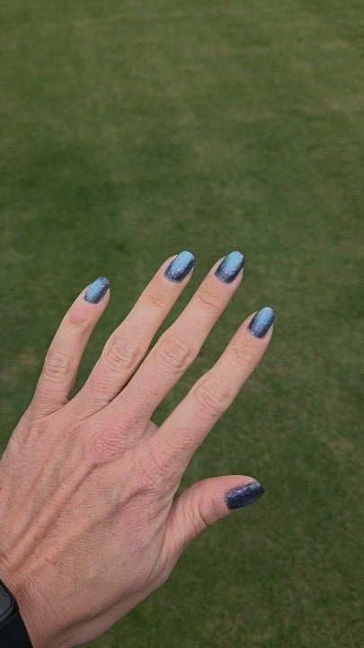2 coats Opal Theory Lagoon Nebula. 1st coat is thin, unmagnetized. 2nd coat thicker, magnetized with rotating horseshoe magnet contraption.