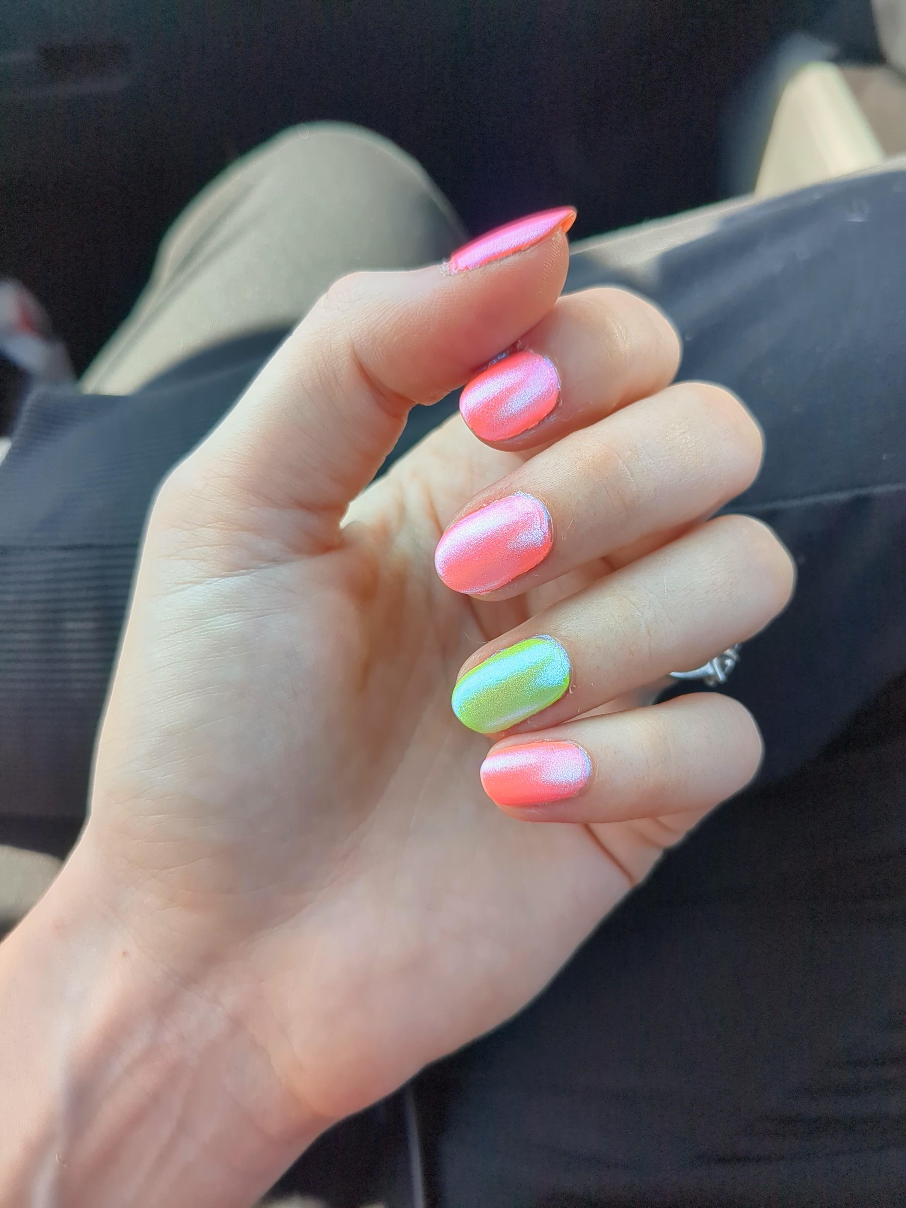 More neons this time lol: OPI Nail envy base coat, ILNP Sunny Days and Playlist, topped all with Clionadh Radiance, then KBShimmer QDTC