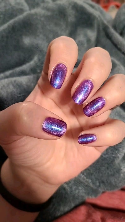 Bottom coat: Biotin Ultimate Strength Color: Cracked – No Reservations. Second coat magnetized with a ring magnet. Top coat: Sally Hansen QDTC also magnetized with ring magnet. by etta1188