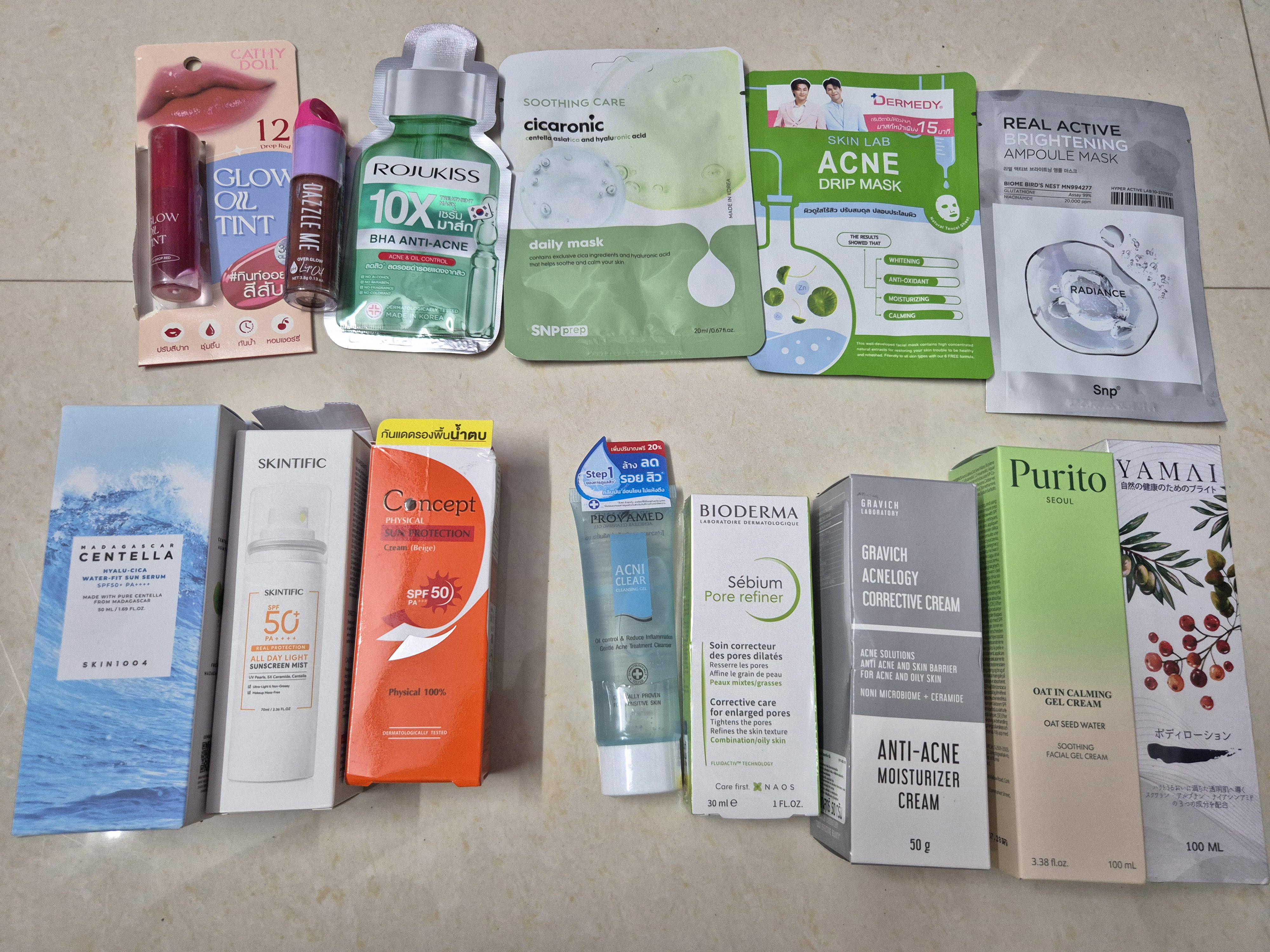 These are all what I got as non comedogenic girlie from Thailand. It was a pain in neck to search all the ingredients. And the ones I pre planned buying branded ones (centella, bioderma & purito) broke my wallet🫠