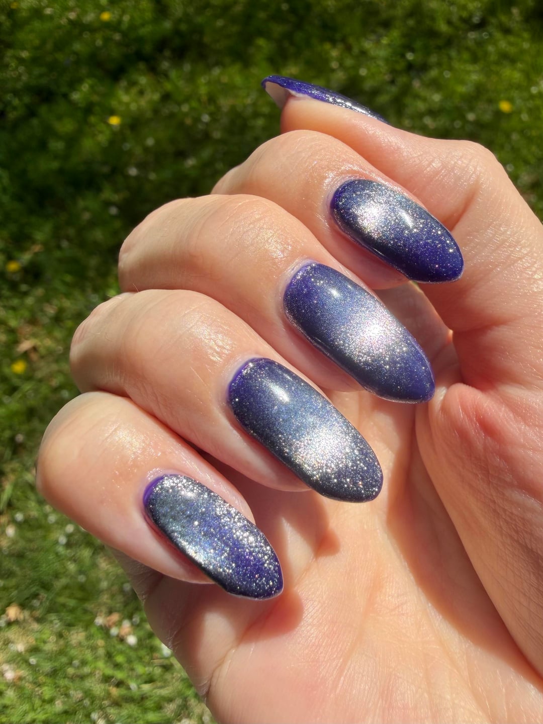 These actually took me forever because I originally thought I would cover the magnetic topper with another thin layer of Moon Jelly, but when I did that I didnโ€™t like how subtle it was. So I went back in and magnetized the topper over it again. I like to think that it adds depth since you can still see the magnetic effect underneath somewhat.