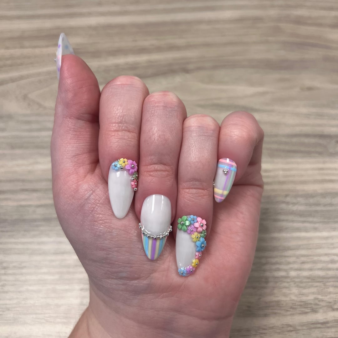 I did my mother’s nails again; she’s 75 years old and asks me to do them. She also wears eyelashes, hahaha.