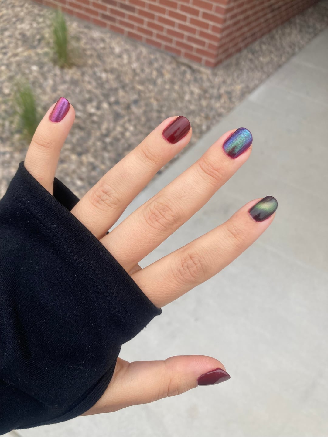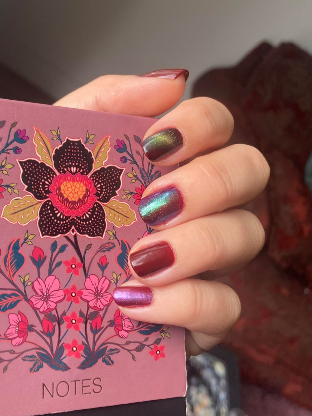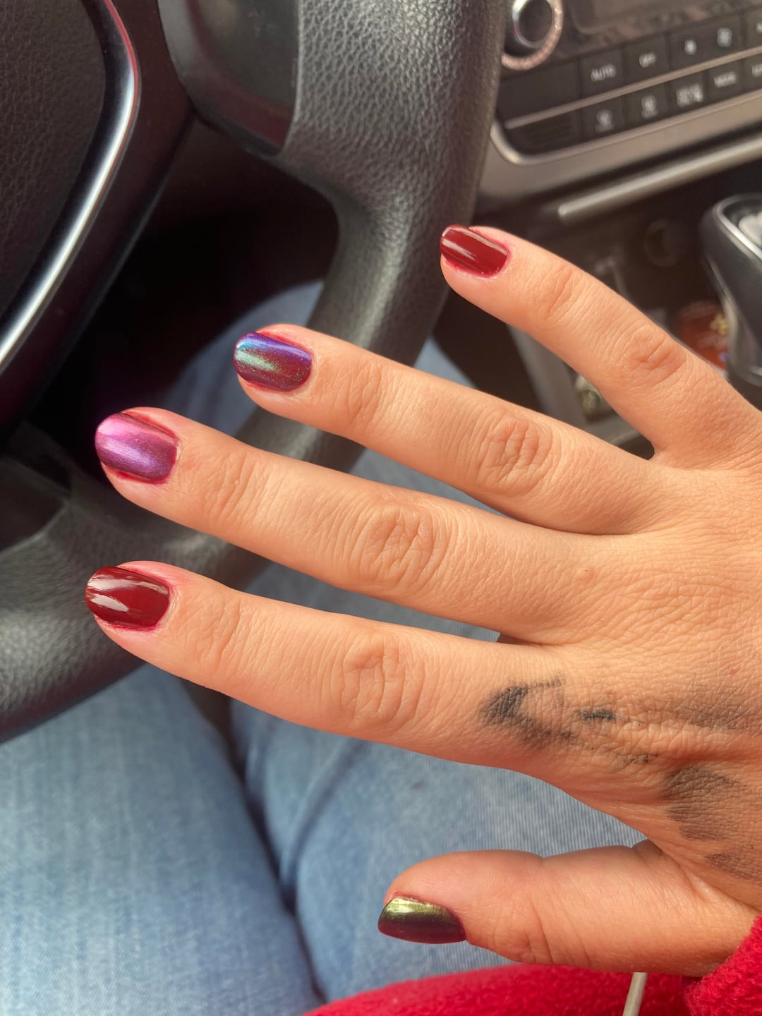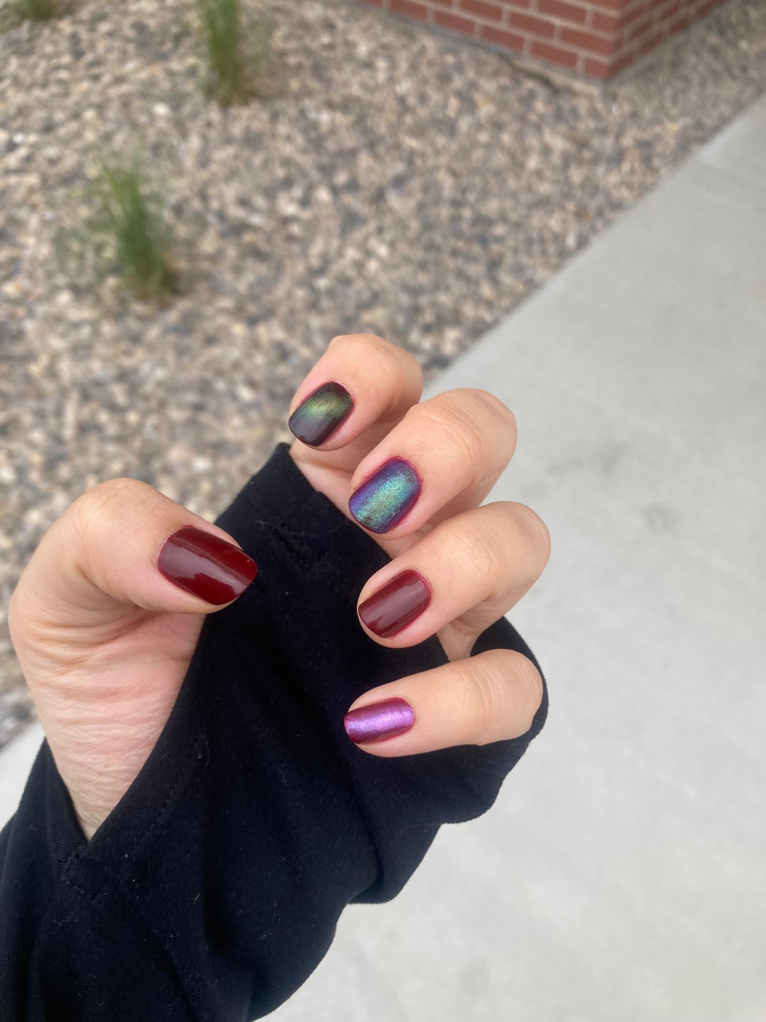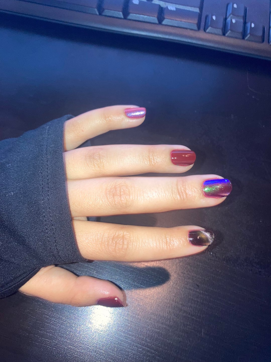 Also there are some lightings where i LOVE this mani and some im like- eh. I think I like the order I put the polishes in better on my right hand but my left photographed better. Anyways, what do yall think? are we feeling this one or nah?