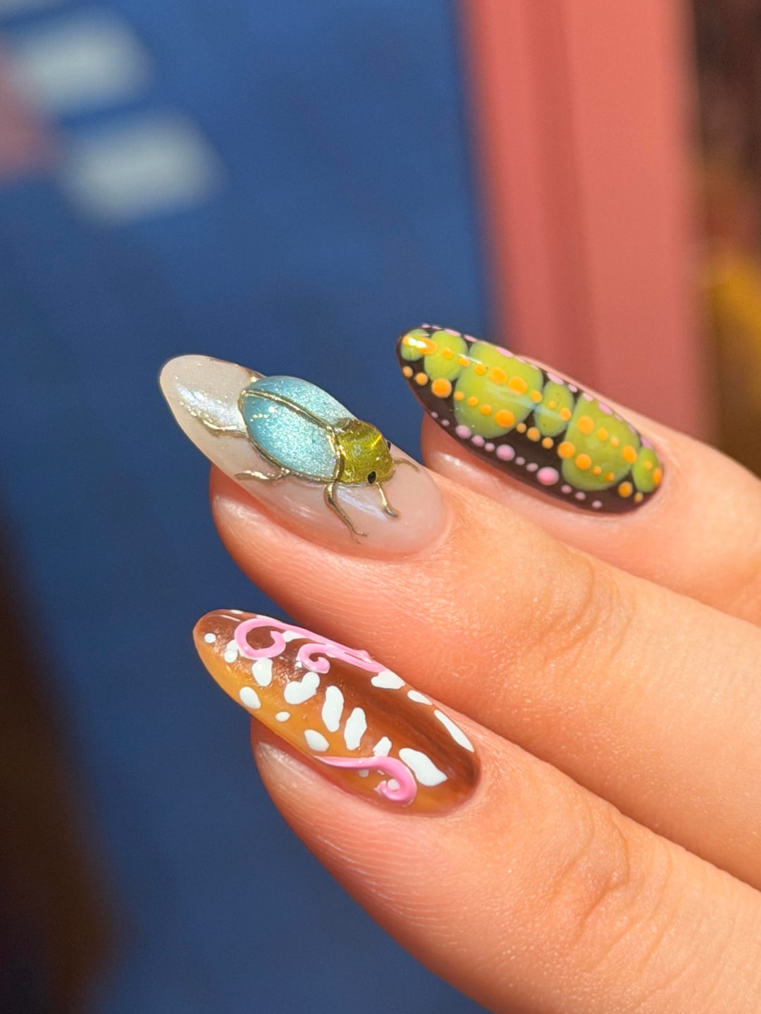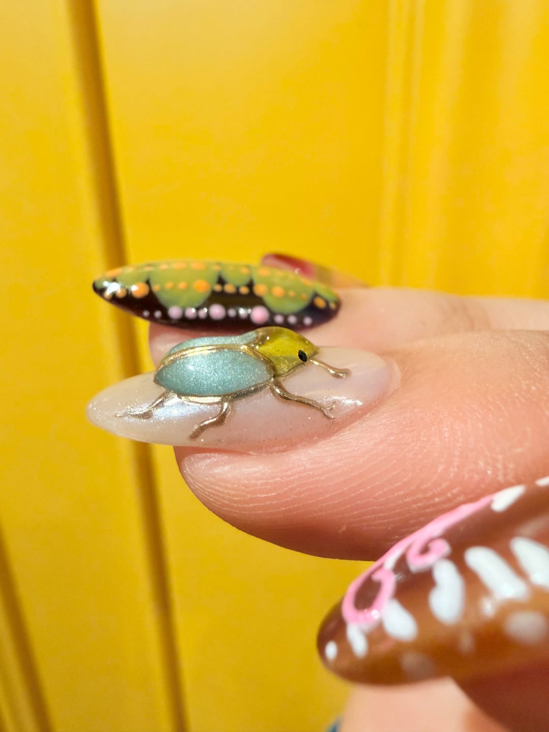 the beetle took way longer than i expected… kept messing up the placement and had to start over more than once. not sure if it was worth the suffering but here we are 🪲 the caterpillar one was actually easier lol