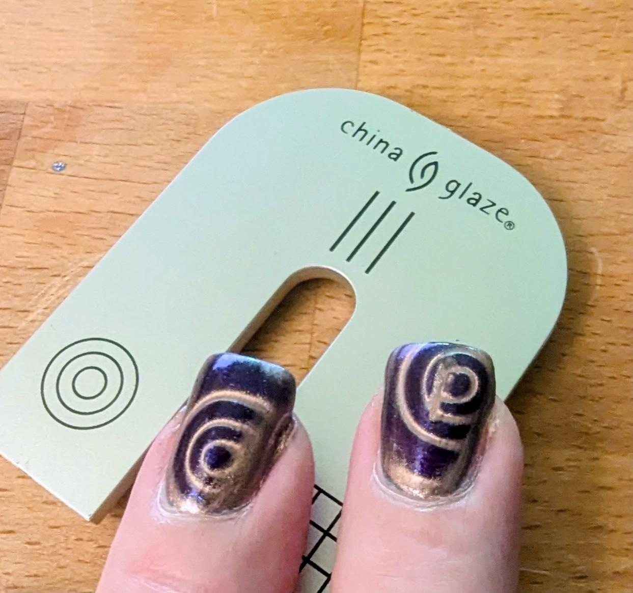 My first try: I put on 1 thick coat of fine particle magnetic polish over my current mani on 2 fingers: