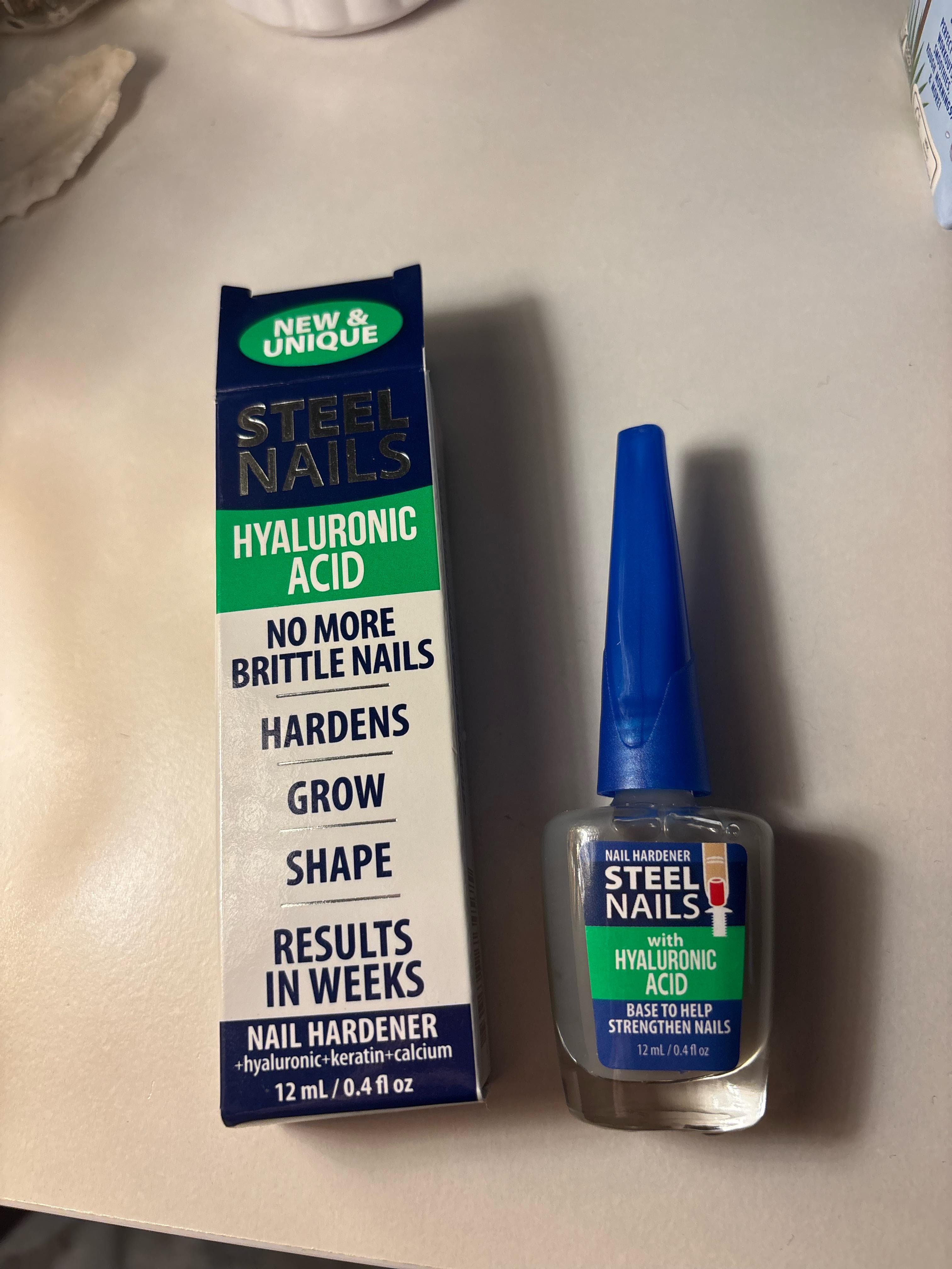 The product is the Steel Nails Hyaluronic Acid Nail Hardener