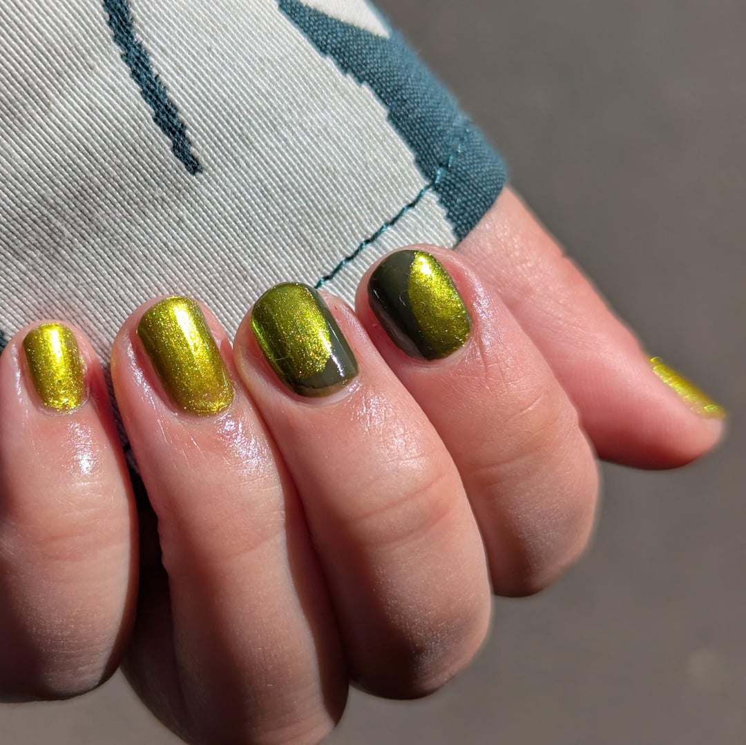 I'd wanted Essie Tropic Low (discontinued but why!) for ages, then found it on some odd discount cosmetics site (note I'm in the UK), got it this week and I was not disappointed! It's SO shiny and applies beautifully too. Would you call this a metallic? Chrome? Very shimmery shimmer? I think it might be my favourite finish! And it's such a joyful green to me.