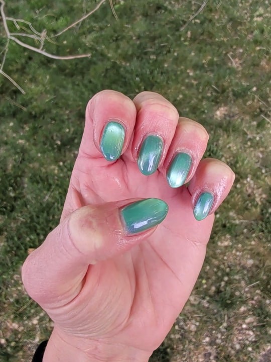 My order from PPU arrived today, so I immediately had to try this one on. I think it's one of my favorite manicures I've ever done! It compares to Bog Dweller but there is a purple shimmer to it that I love!!