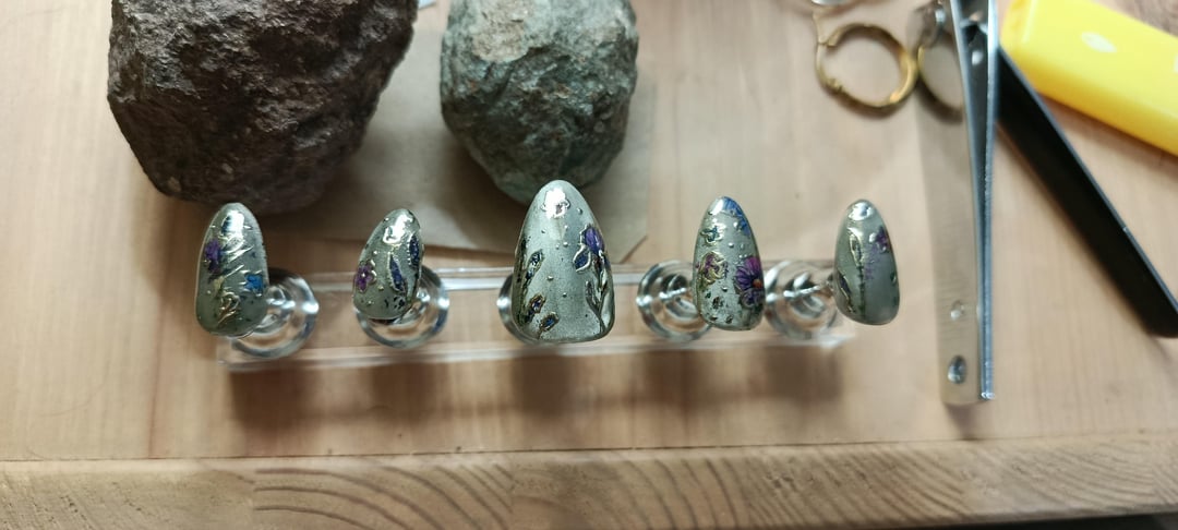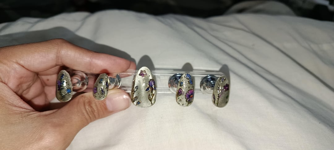 First set with design I've ever made. I'm no professional (clearly) and usually I do my own nails in one color or french tip and this is my first try with something new, be kind please 🥹 by limrtyam