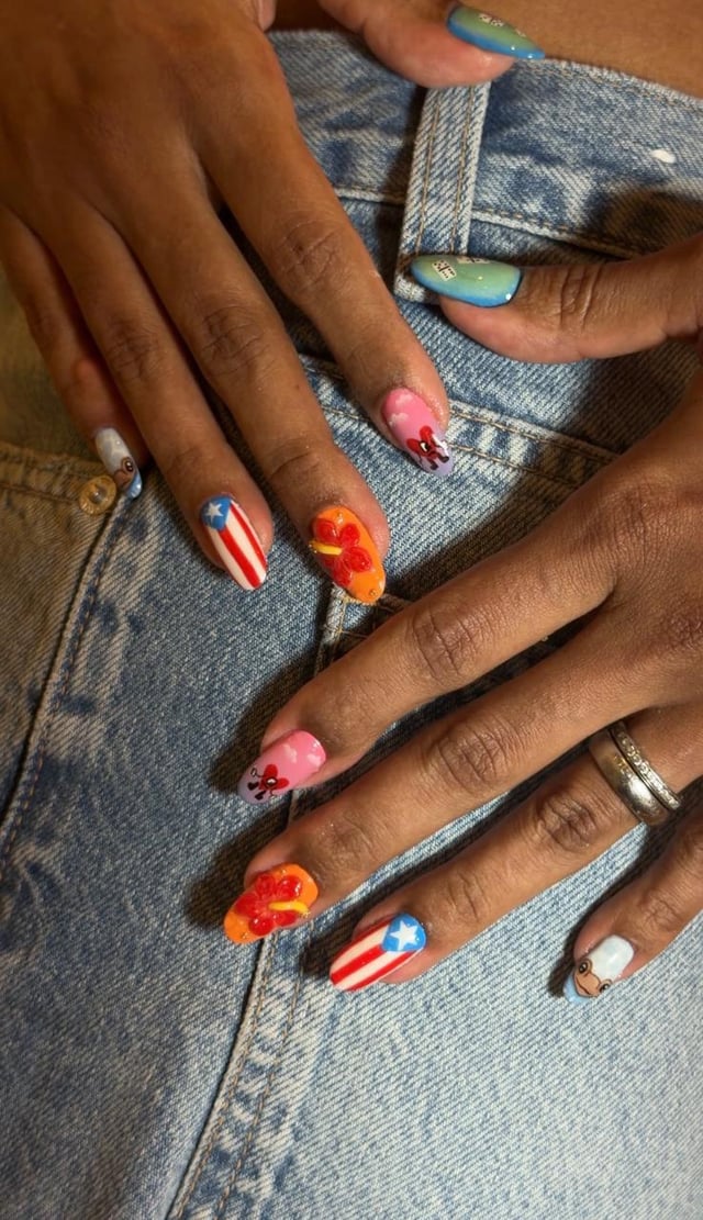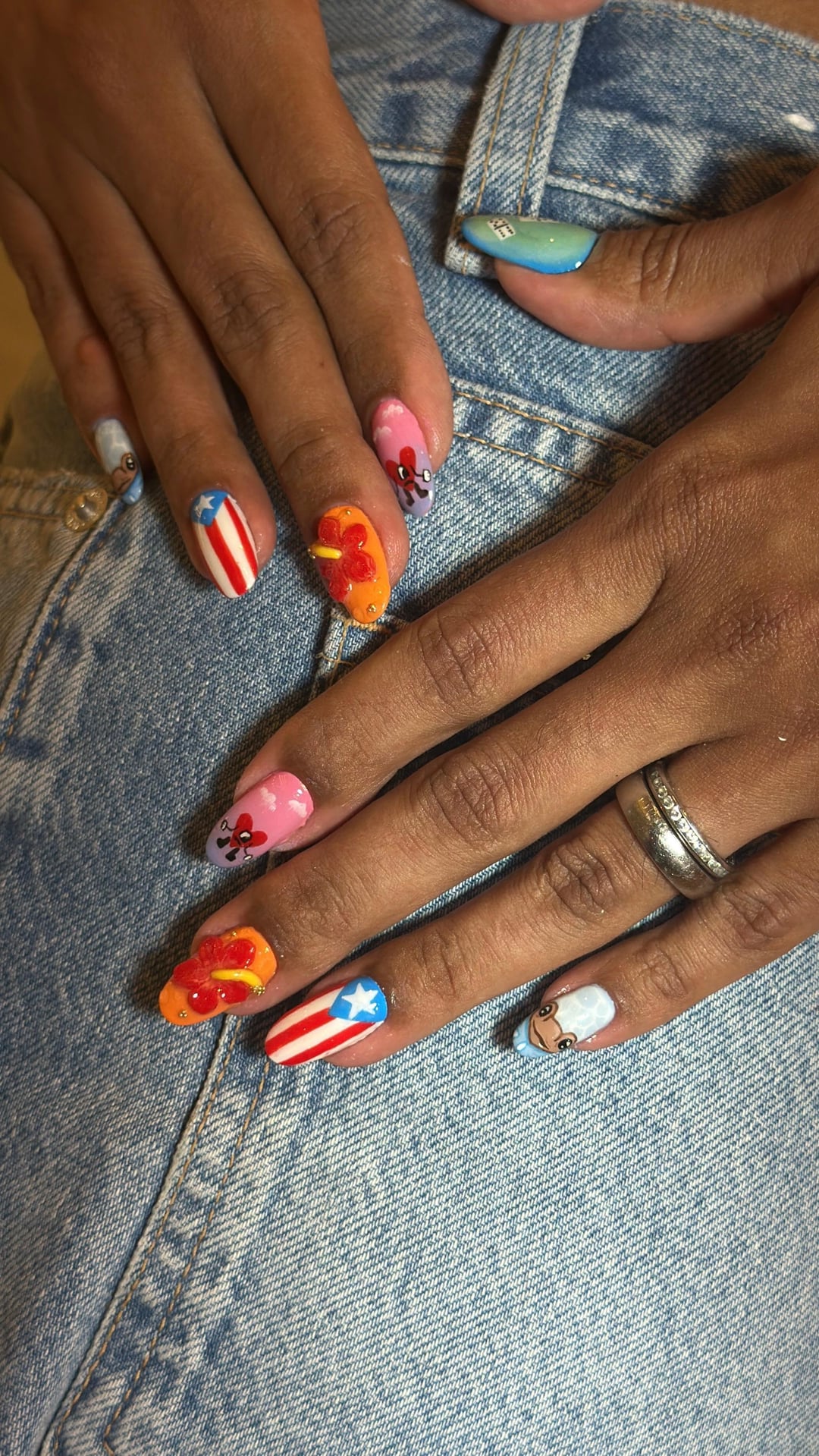 Does this nail shape look good?I put a small flower at my fingertips,which is as beautiful as growing on my nails.What do you think?