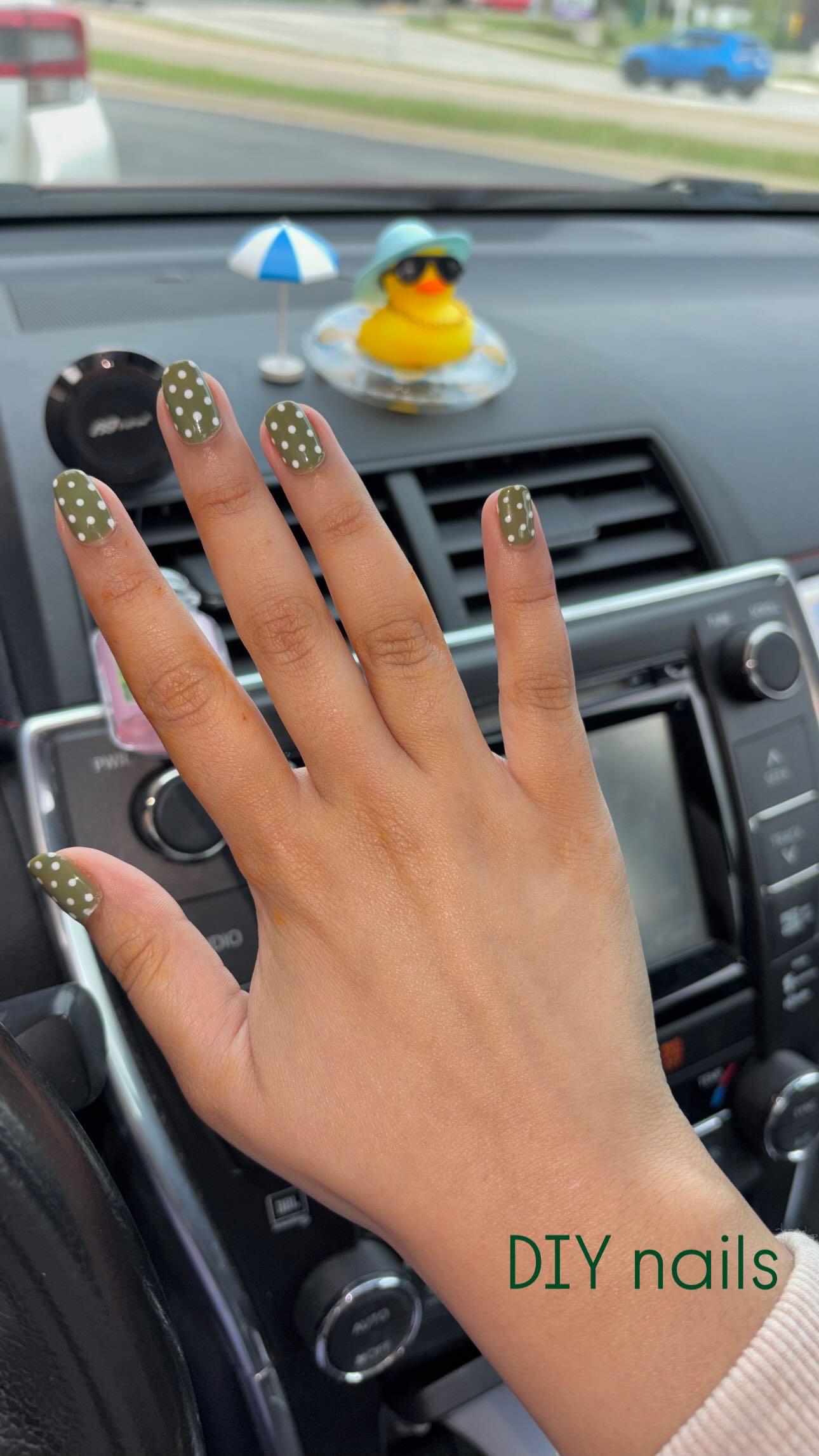 Cute! ☺️ I just came back from the salon with something similar, olive green and white dots are a vibe 💗