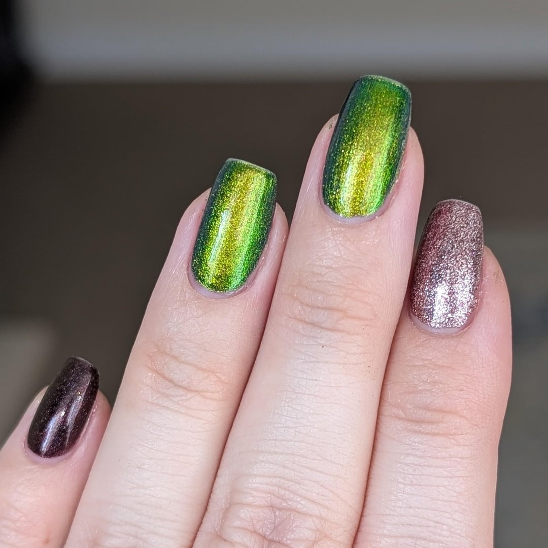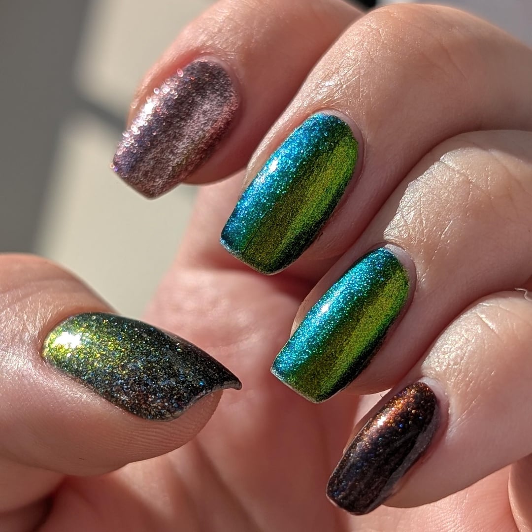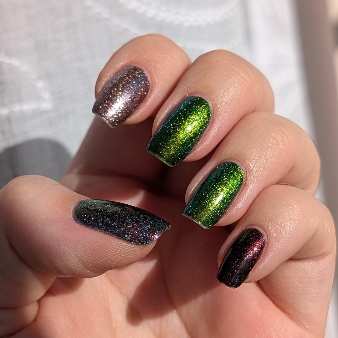 Just wanted to give my recently favourited green multichrome shimmer some love! I couldn't find much info on it before I bought it, and wasn't even sure I'd like it, but I adore it now that I have it!