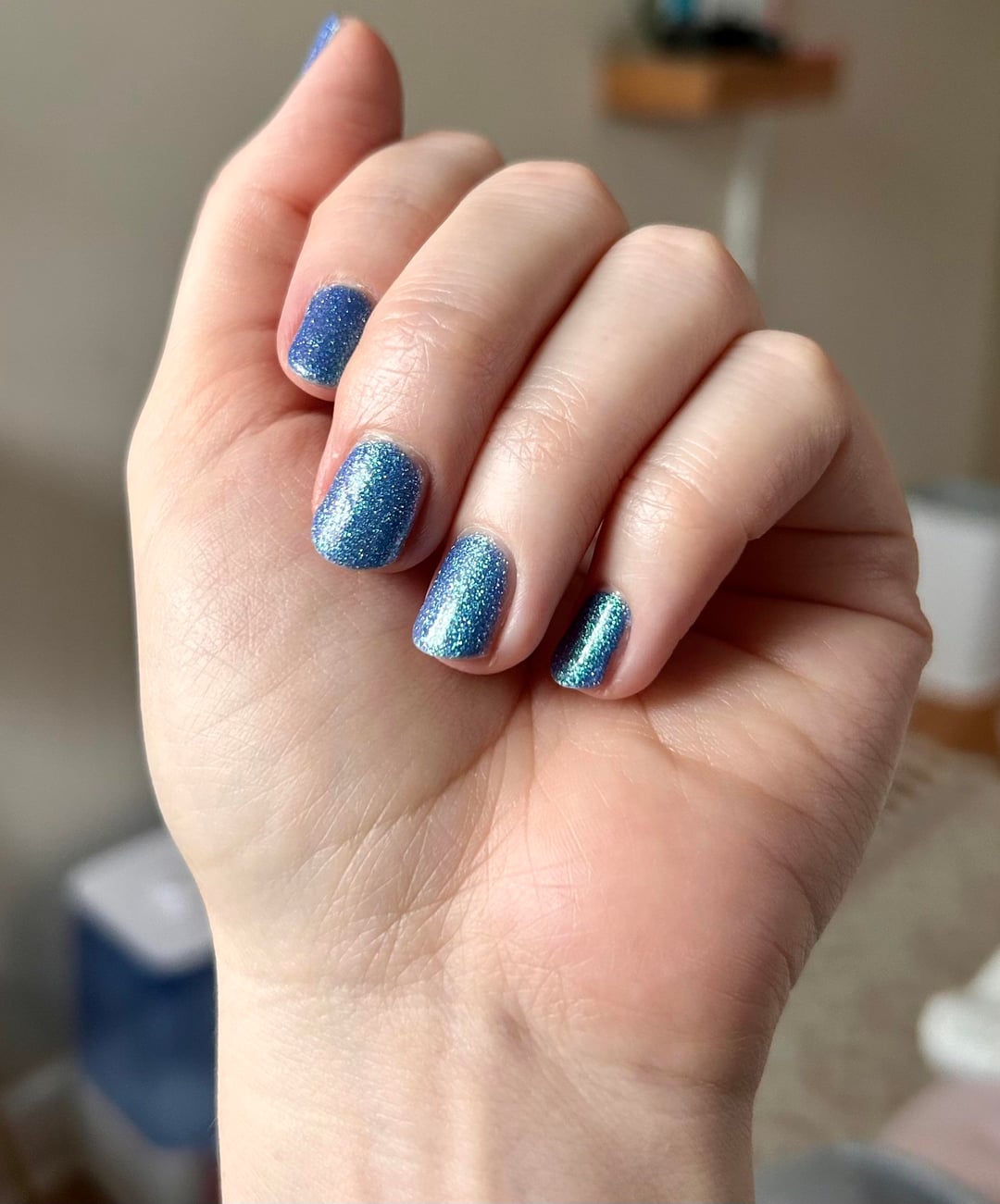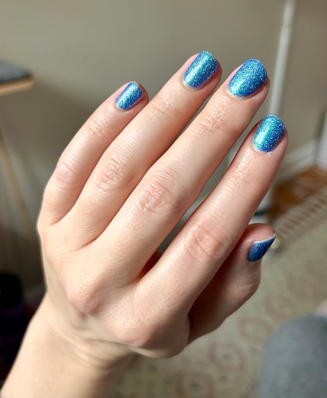 Grownup_Human on April 26, 2026 2:46 pm In order of application: HT smoothing base 3x An Inexplicable Impulse by Lurid Lacquer KBShimmer Smooth Moves Essie QD top coat