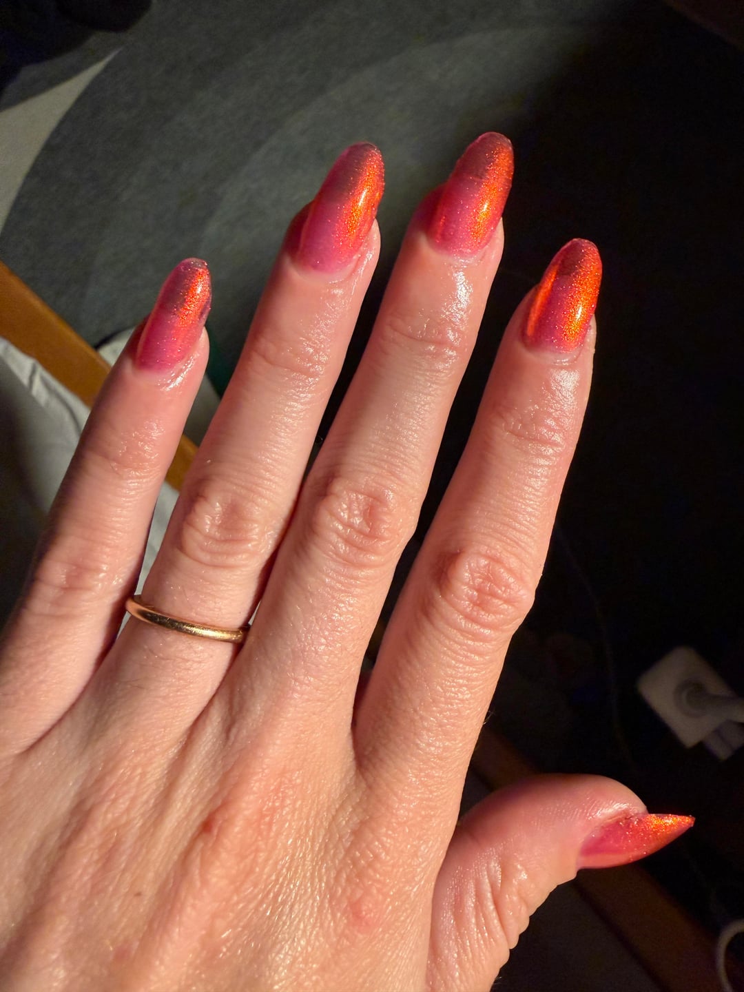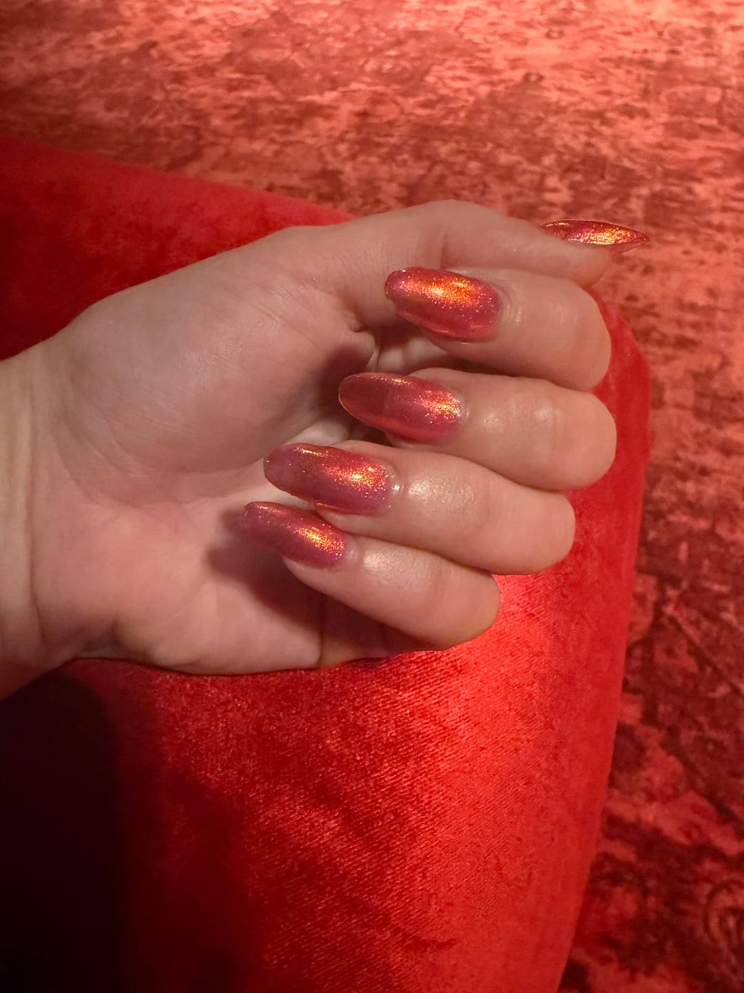 My mother would have considered this as part of the “whore red” category of color I was forbidden to wear as a teen. Super happy to be embracing it now and the peace that is adulthood away from a controlling household. This formula was lovely and the perfect glowy sheer that is buildable. I really love Ethereal’s polish. I tried to show it in different lighting.