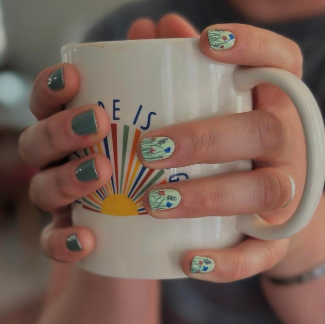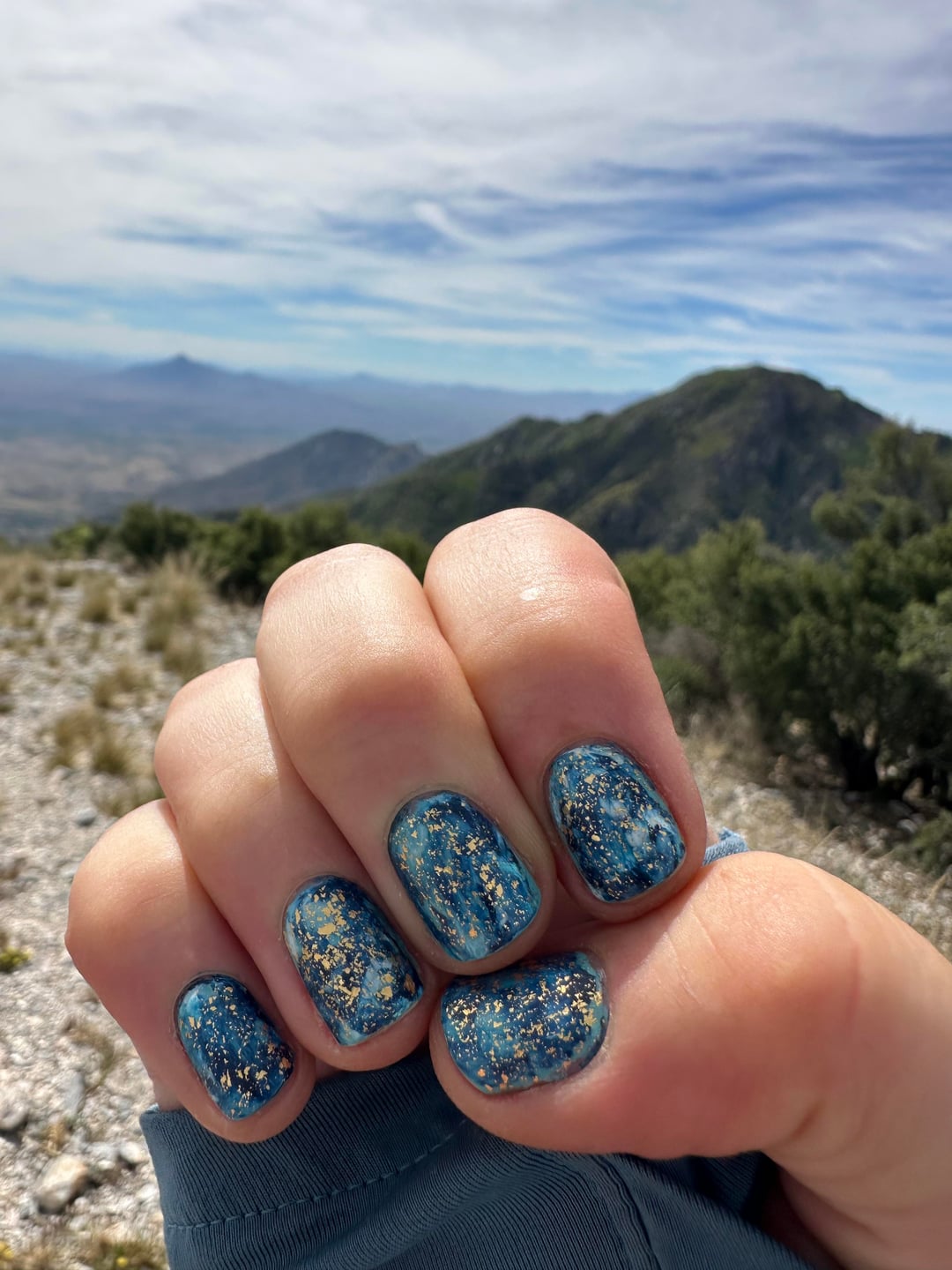 Share Facebook Twitter LinkedIn Pinterest Bluesky Threads Last two are my current mani. Did one hand water marbled, decided it was too much of a pain in the butt, and squish marbled my other hand by GrappleLacquer