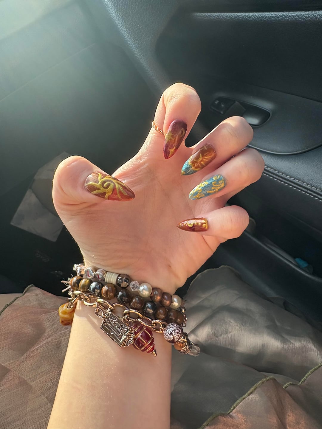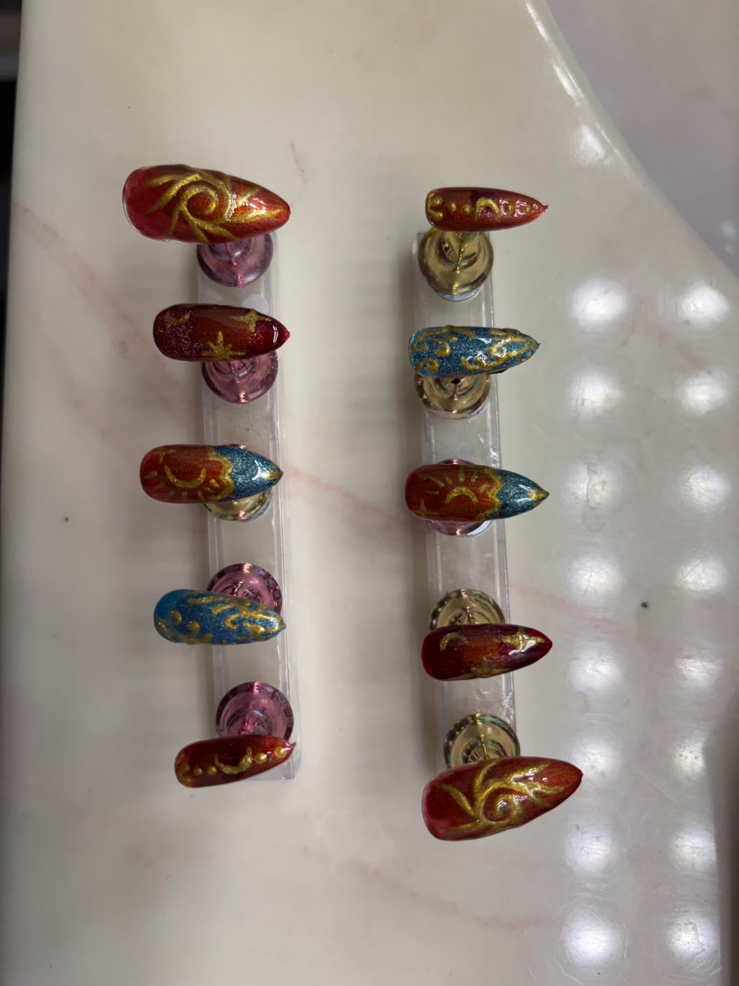 Share Facebook Twitter LinkedIn Pinterest Bluesky Threads press on set made with cat eye gel, wondering how I can improve my nail art and technique. 💖 by Ambitious-Towel-48