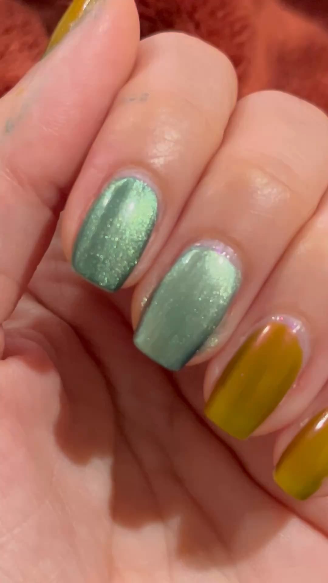 Index finger is Arcana A Certain Shade of Green PPU x2 and middle finger is BKL Bog Dweller x3. Arcana is ever so slightly darker, less shimmery, and the formula is more opaque. But it's essentially the same. I'm bummed cause even though the description said teal, the swatches looked emerald or forest green, so I was hoping it leaned more green.