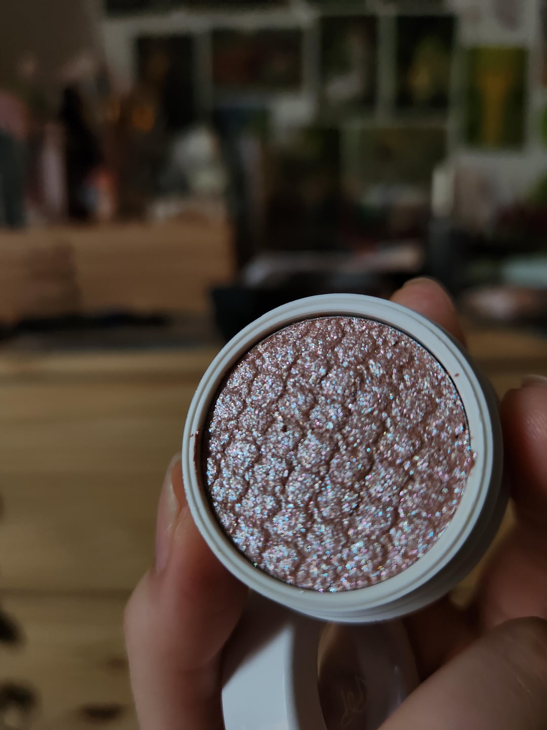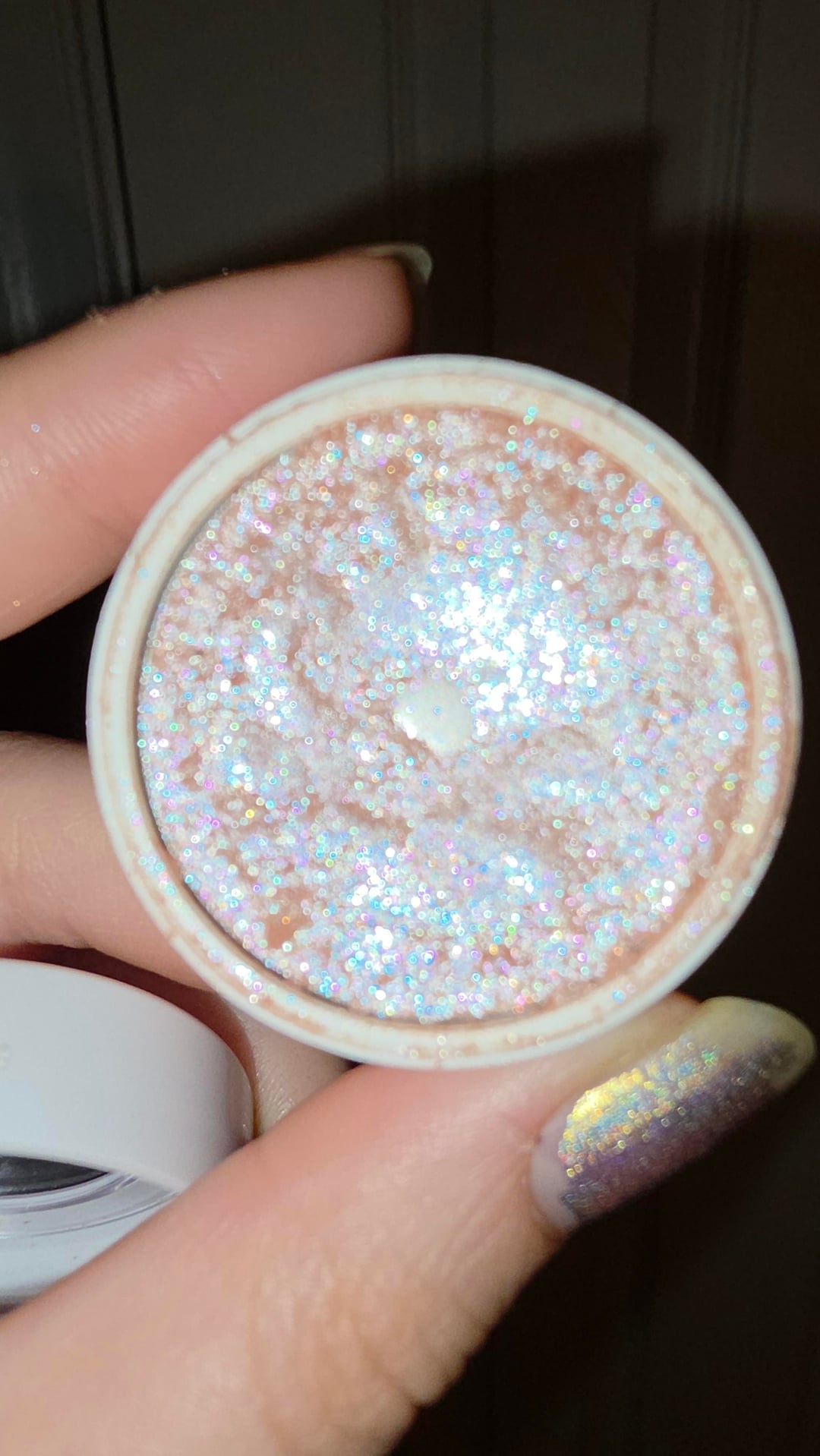 Got it because I saw someone else's pan of it on here and it ended up influencing me haha. There's multicolored sparkles but it still looks like highlight, not too much multicolor where it looks gray.