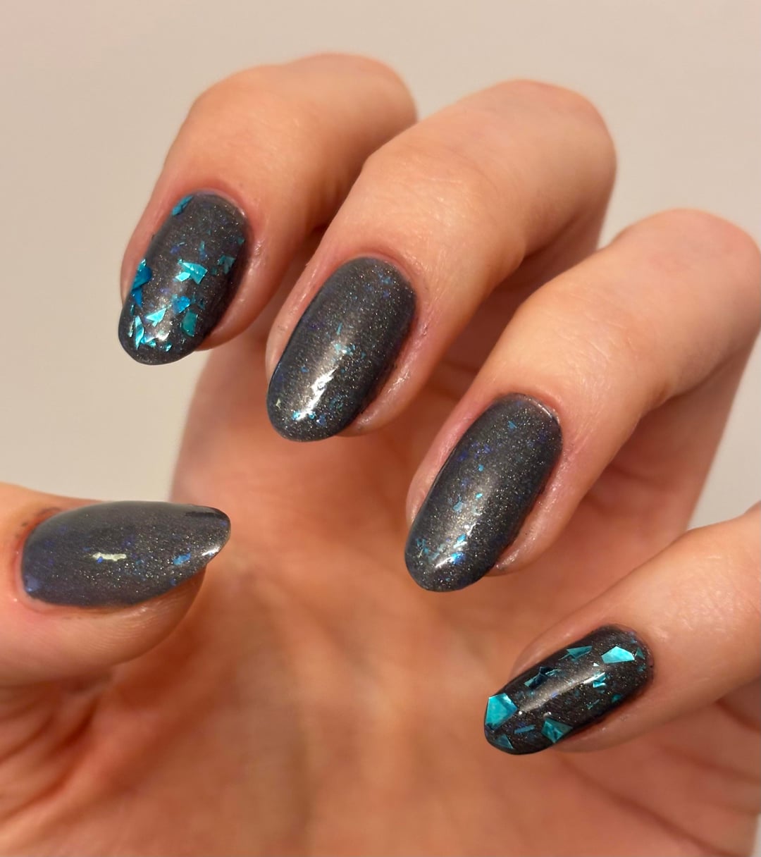 The best things in life are free, but charity nail polish definitely ranks up there. First off, I really, really love the recent Opal Theory Artemis II polish, because I enjoy all things space exploration. Also, I’ve been rewatching the old seasons of FAMK before I dive into the new one, because I miss when it was a show about the moon. And because I have a flakie topper obsession, I also had to love it with some accents from Starrily Sea Glass for a very literal interpretation of lunar seas.