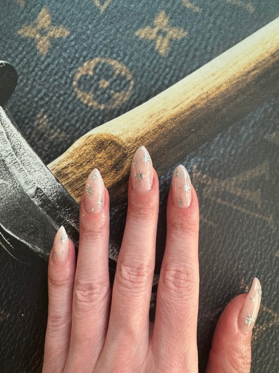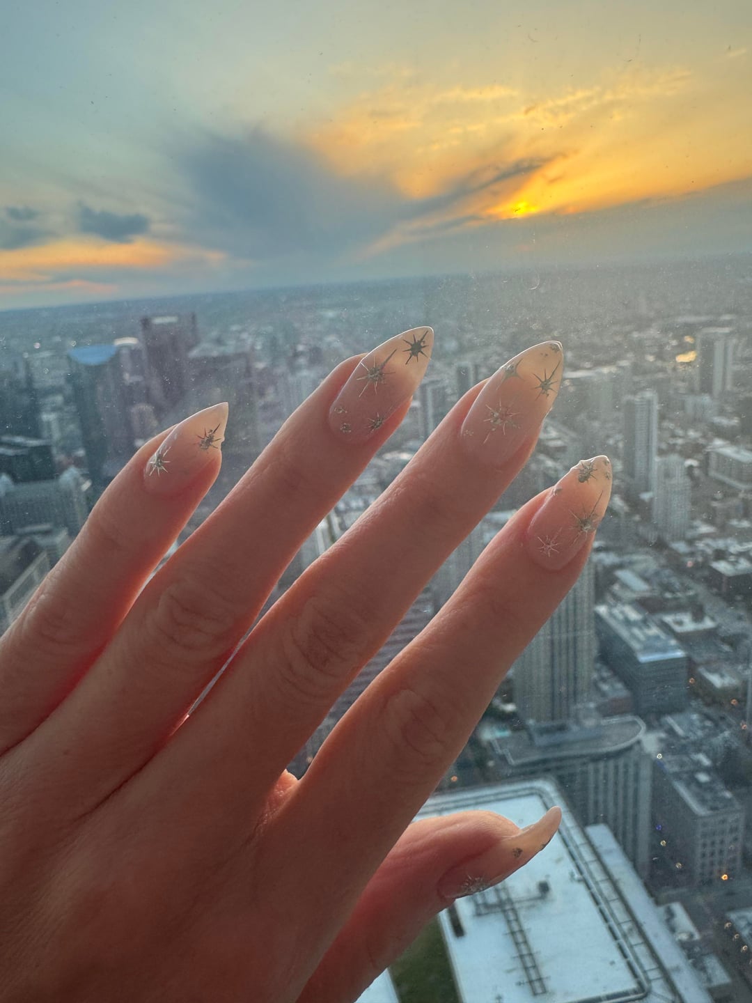 Was so completely inspired by the brilliant u/Ok_Novel_1680 ! Replicated her beautiful manicure and sunset photo to pay respects 👑. Not perfect but happy with this as the second time only I’ve done my own nails. Thank you again to my girl for the incredible inspiration