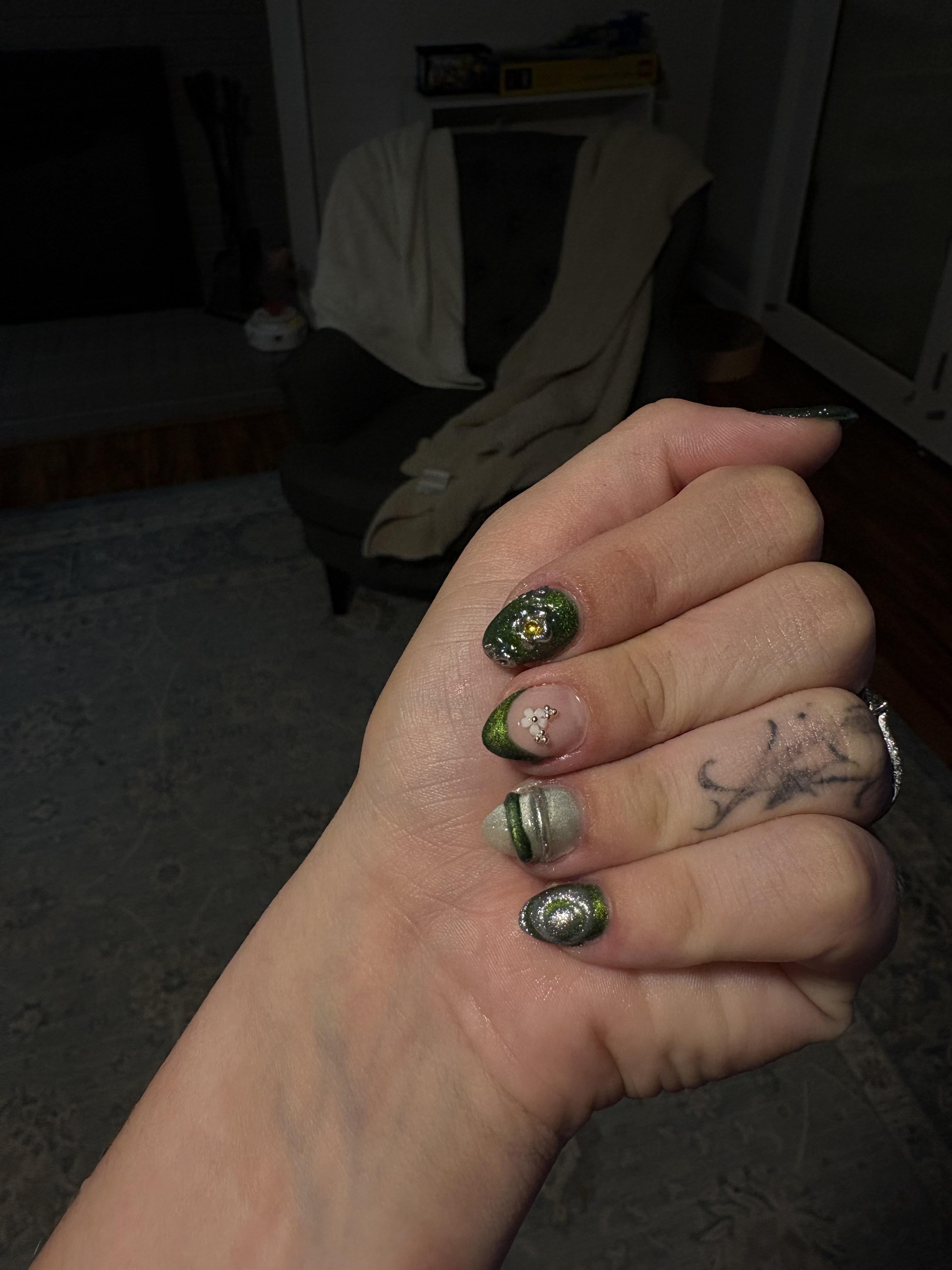 Share Facebook Twitter LinkedIn Pinterest Bluesky Threads I want to re do these with a solid base, i have never used builder gel or cat eye before and this is only my second time using chrome! by Defiant_Flower_7631