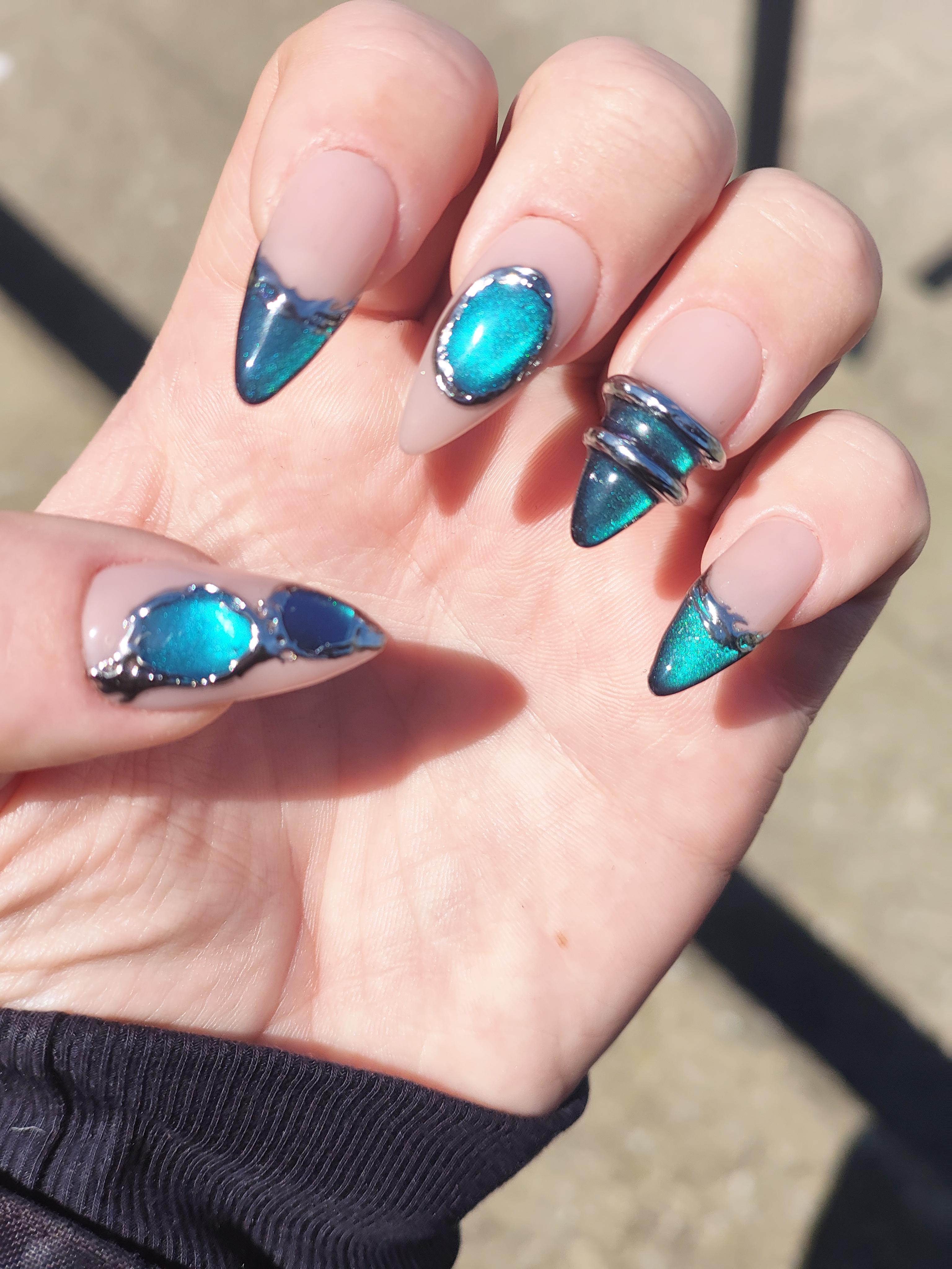 These look like tiny dragon scales or something from Vaes Dothrak – really cool color shift effect you got there