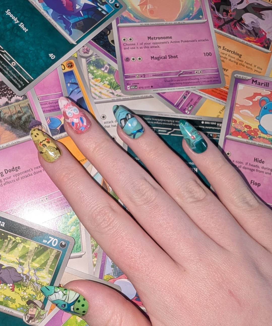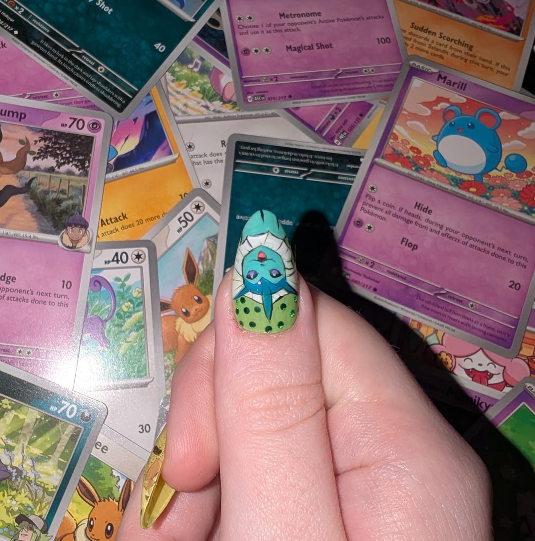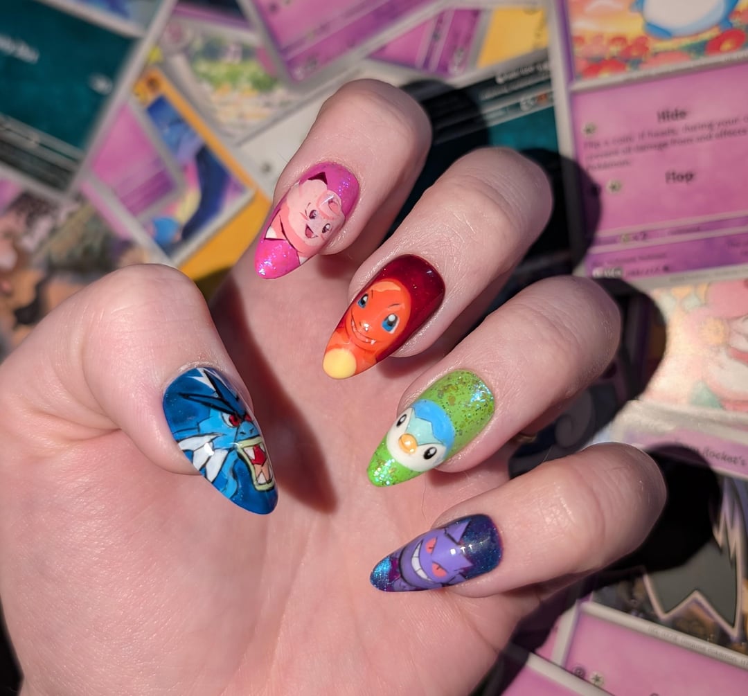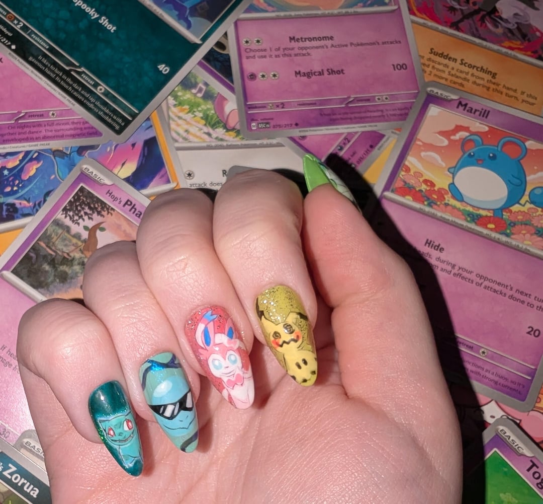 Share Facebook Twitter LinkedIn Pinterest Bluesky Threads Sorry if you saw this post earlier, my Reddit has been acting up today 😔 but here are some press-on pokémon nails I painted! This was my first time so they're a bit derpy 💓🩷 by alwayssleepy101