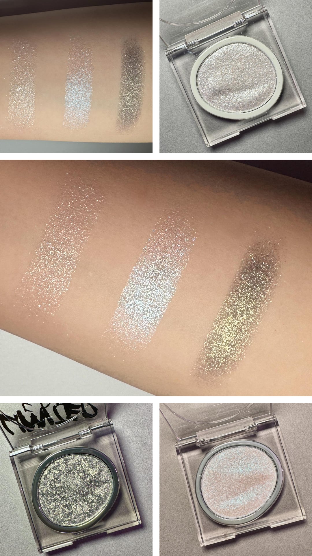 i cannot emphasize this enough, the shadows are beyond quality! they were all smooth to apply and it just feels so soft. the color payoff is easy to work with – i don’t find them to be too pigmented and the color is buildable. these three all have different sizes of glitter and variation and their collection of glitters are actually diverse and different from other eyeshadows i’ve seen. the rest of their selection is also sort of incredible just in terms of unique shades. i am looking forward to trying the mattes too and see if they’re just as buttery. if you’re into eyeshadows i would definitely recommend, and they have palettes too.
