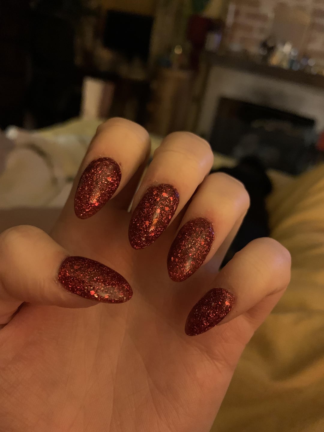 Sassy saints dip powder in the shade Sultry Siren done on myself, natural length (only possible thanks to dip powder.)