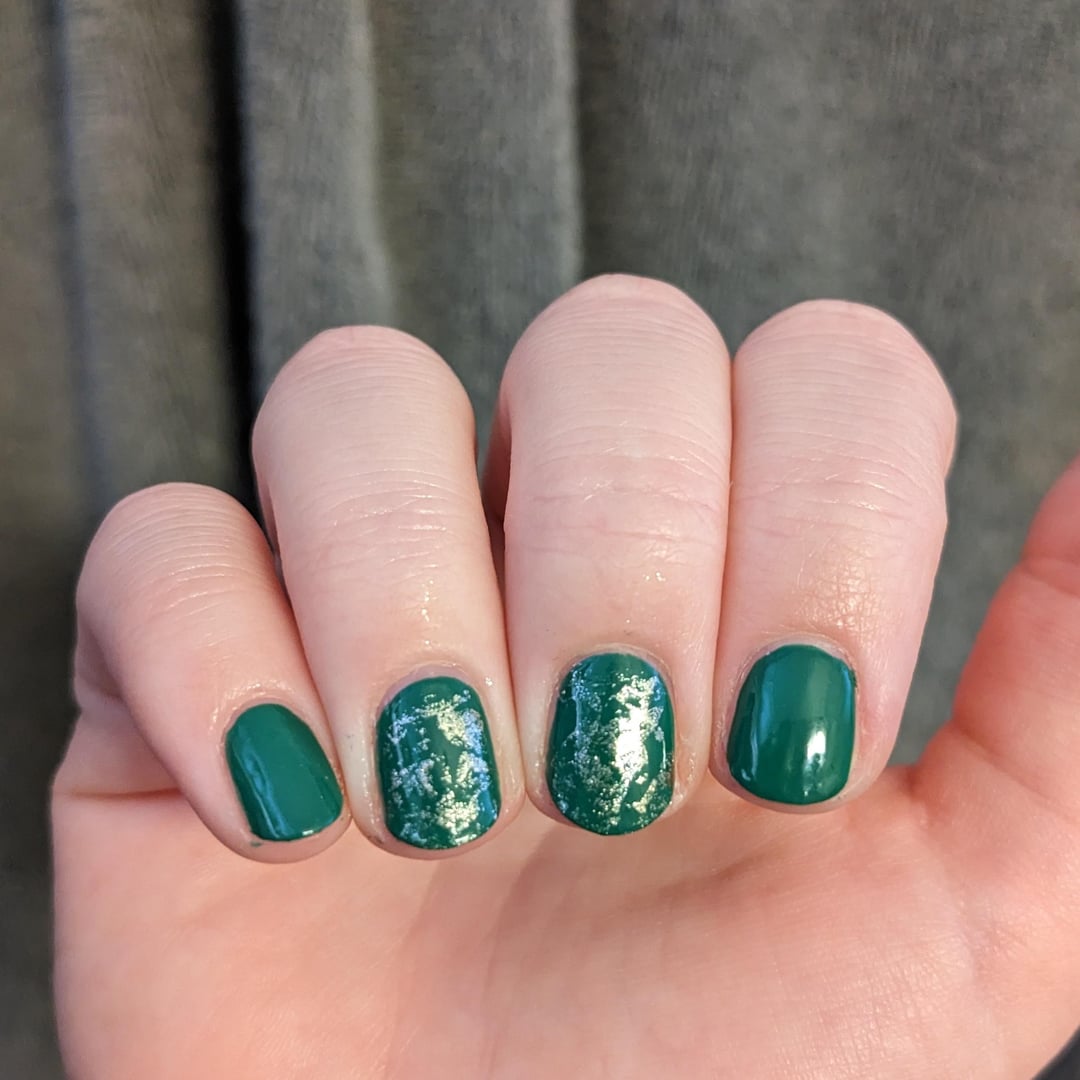 Last image is with polish for an early St Patties look, I did the smallest amount of shape correcting here by avoiding the widest part of my nail and trying to drag the polish straight from my cuticle to the free edge. You could be a lot more aggressive with the color placement to make them look like thinner nail beds.