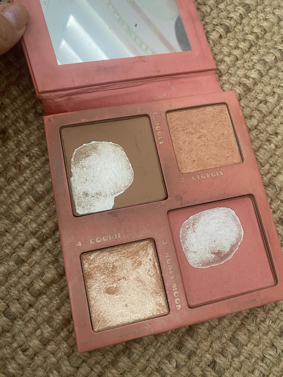 Product- benefit earth Angel face palette including 4 different colors – hoola bronzer, blush and 2 highlights.