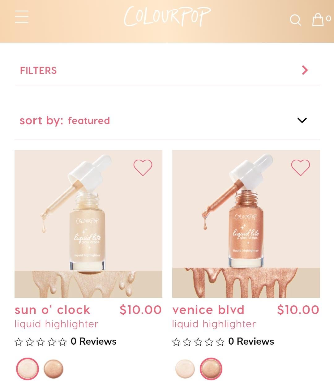 2. [Link](https://colourpop.com/collections/new-now), $10.