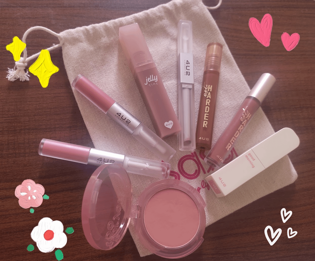 * **4U2 Jelly Tint Lipstick** – A K-beauty esque lip tint with some very cute packaging. It dries to a very smooth rubber finish (in a good way) that is transferproof. Unfortunately I forgot to swatch in my arms, waaaah. Do not trust the promo pictures for the swatches, all of the Jelly Tints are darker than you think – look at the shades on TikTok/Youtube before buying. I have 05 Baby Smile, a mauvey dark pink. Wouldn’t repurchase it as I don’t lovelove it, but I’m still glad I have it. This lippie formula reminds me of the Amuse Dew Velvet Lip Tints, but these are 20% more pigmented, cheaper, and easier to apply.