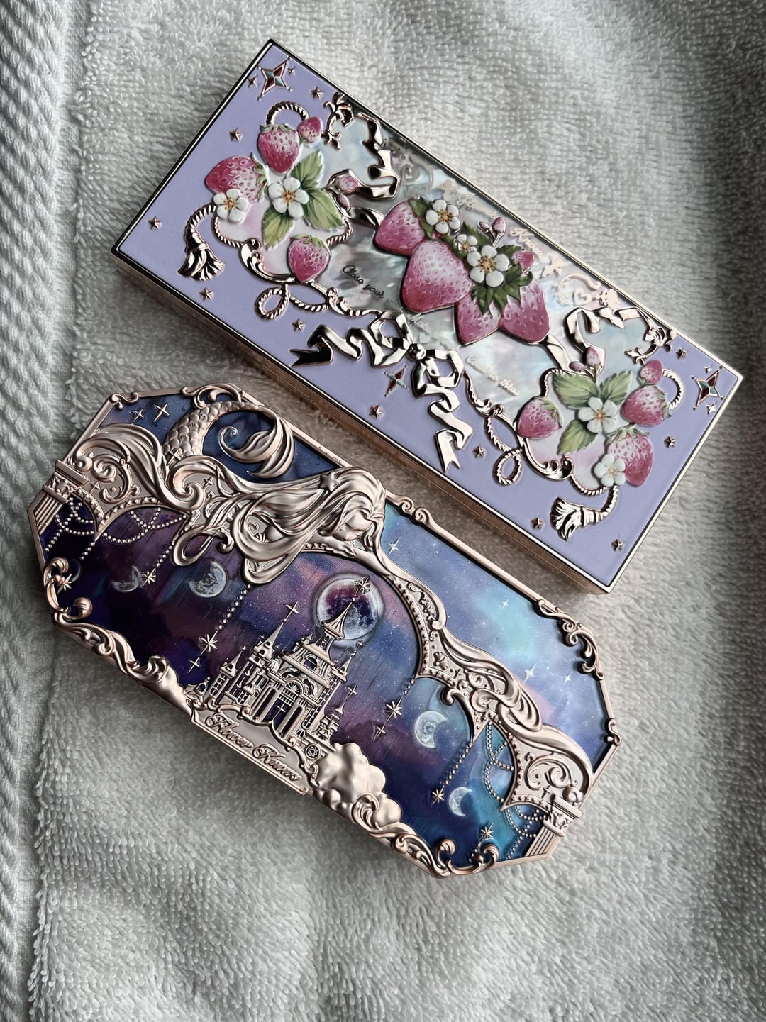 Tbh, a little disappointed with VSR being such a pink-focussed palette with only one actual purple despite having “violet” in the name. However I knew that and bought it anyways because I love the packaging, and the one purple shade works well with the pinks. All in all I’m still quite pleased with these two palettes and glad to have them both despite the similarities between them. I don’t mind the similarities toooo too much because I do enjoy the convenience of being able to do my entire eye look with just one palette. It’s my first time buying Flower Knows and they are just so pretty. Also I really love the magnetic closure, it’s so satisfying!