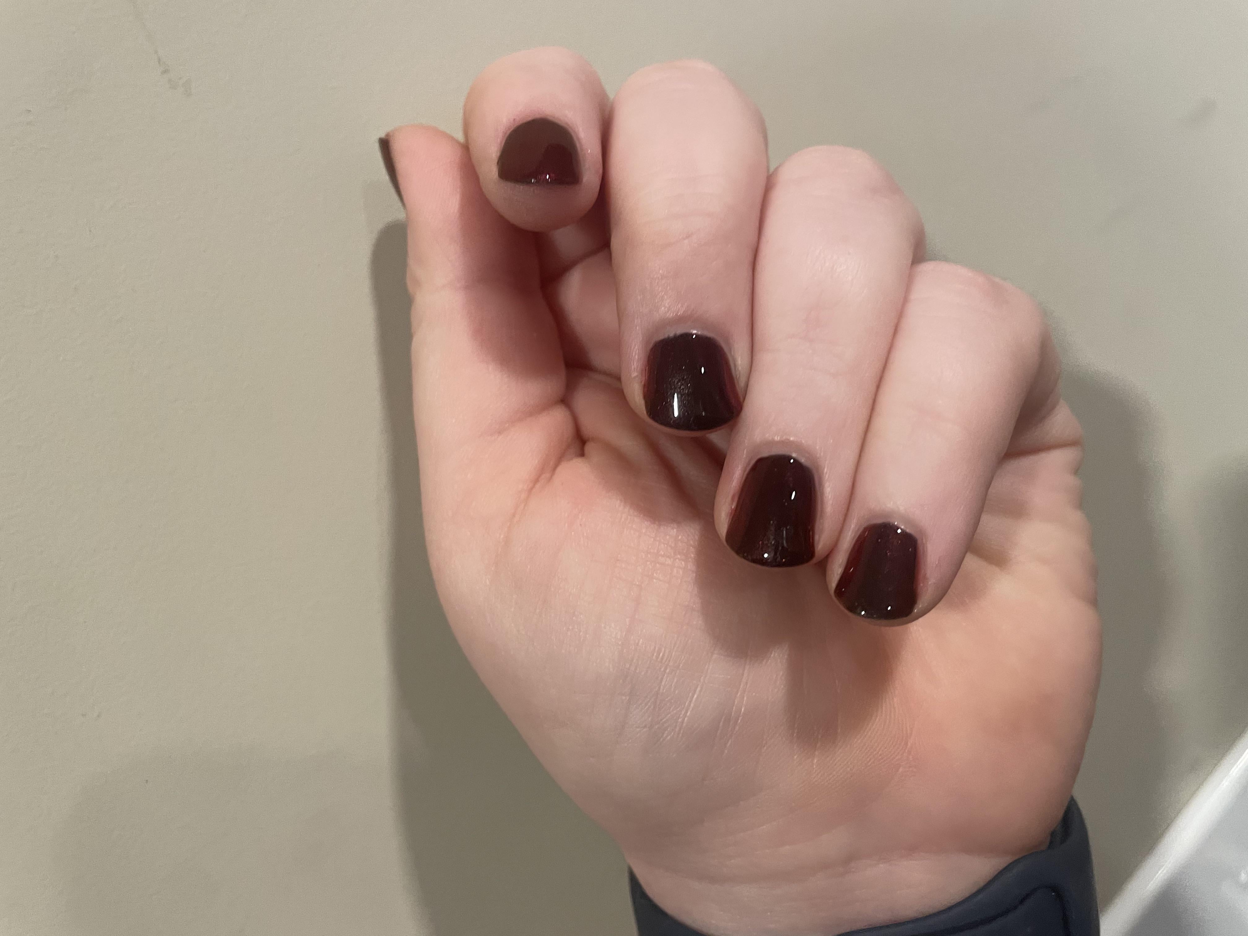 I really liked eclipse but thought the black angle looked a bit chalky, so I tried putting a red jelly on top. This photo does it no justice because I’m terrible at taking manicure pics. But they really look like dark red glass.