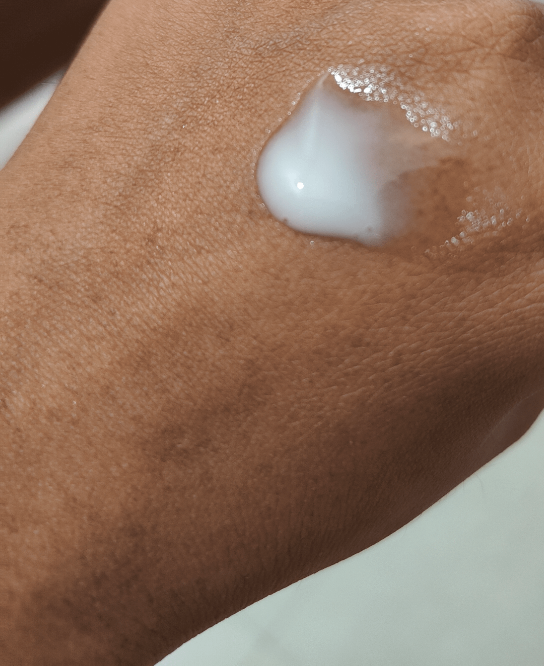 A very tiny amount is required for this one as it has Shea butter and feels very oily for oily skin in a tropical weather as I am in. It feels uncomfortable to be honest as it’s very thick and feels very oily on the face so much so that I would like an alternative. Also, the pic is zoomed and hence it feels more but it’s not even .5 ml on the back of my hand and it’s enough for my entire face and neck.